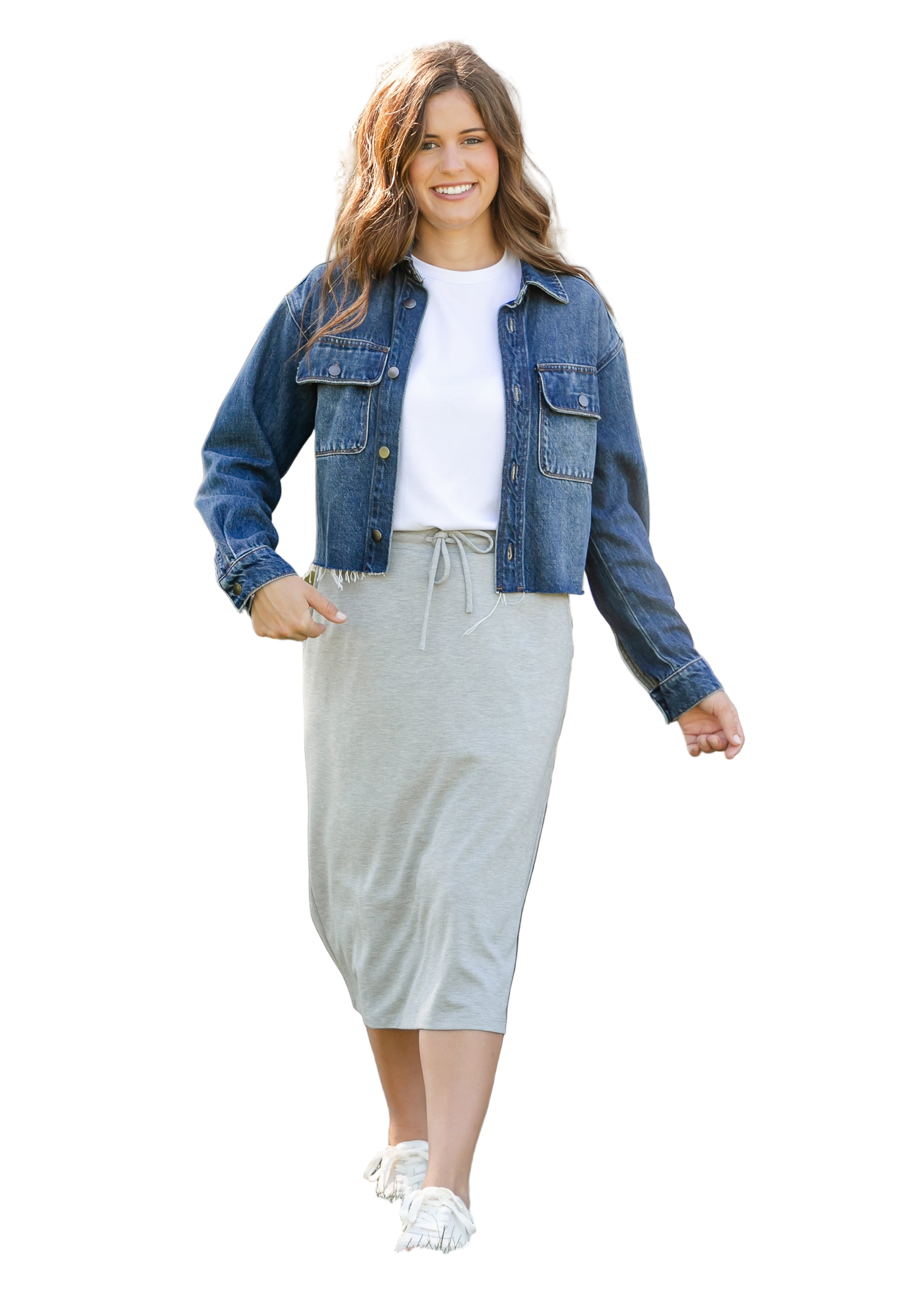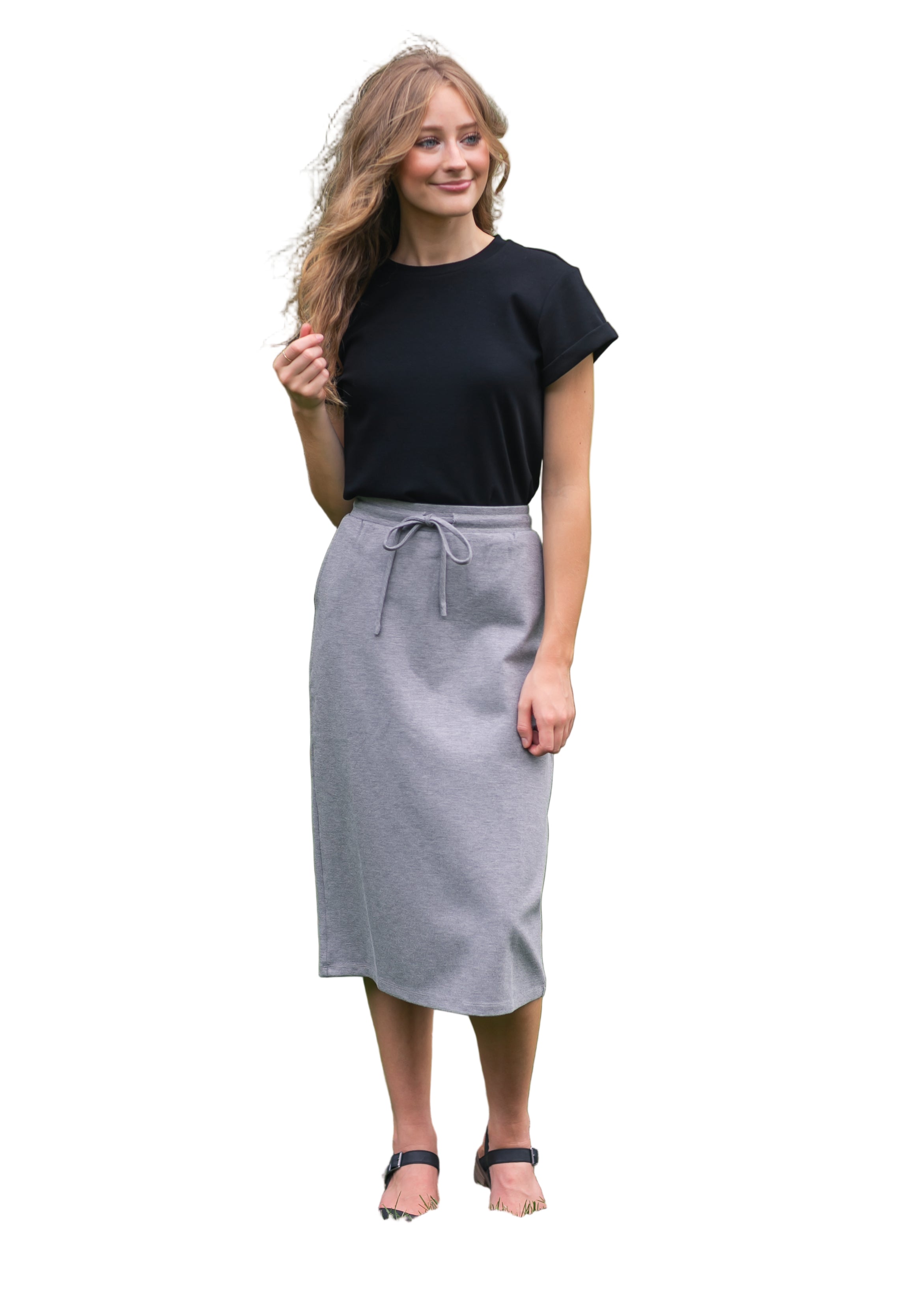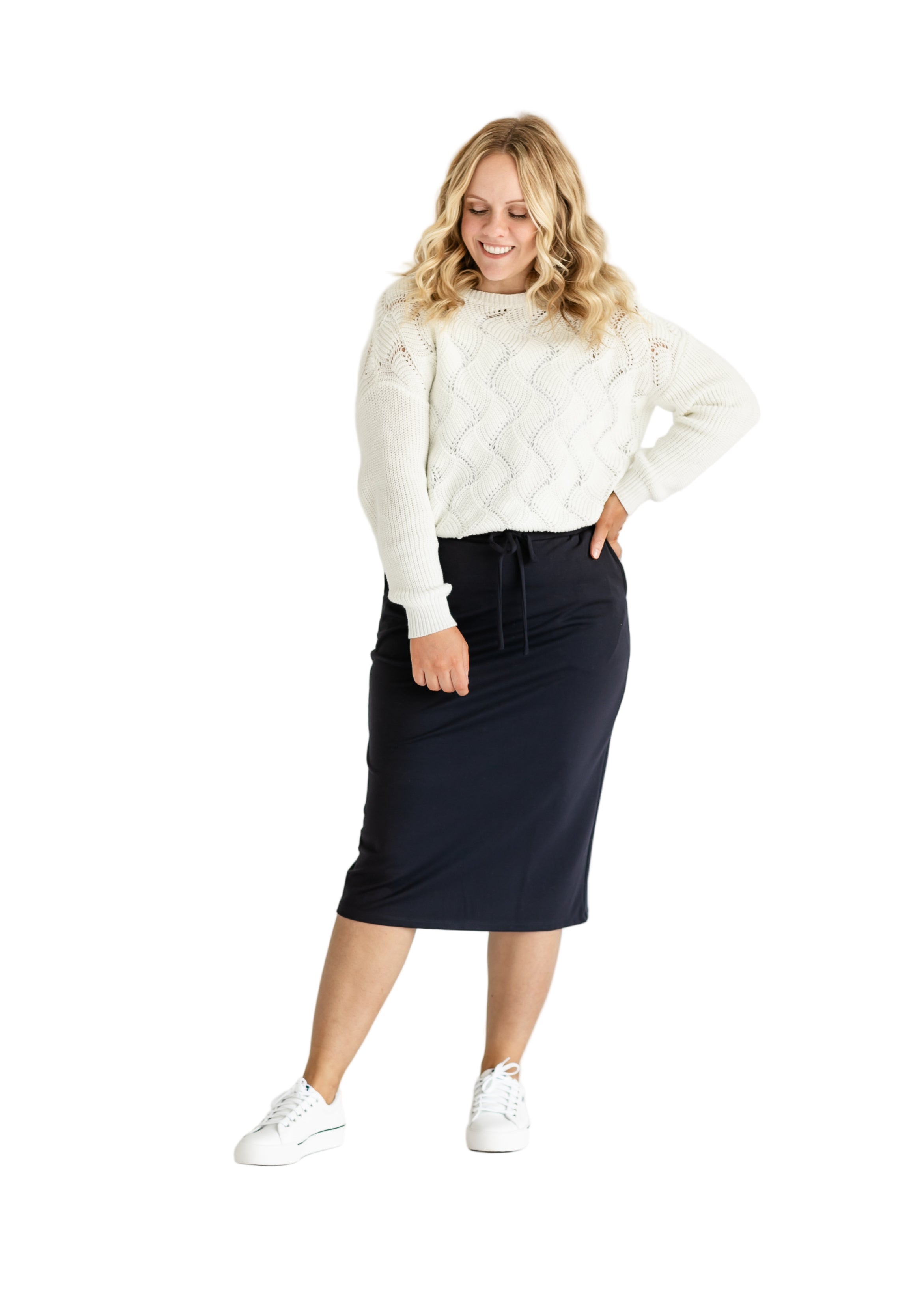 Embrace the allure of effortless elegance with the Jordan Knit Midi Skirt. This enchanting piece caresses your silhouette, offering a dreamy blend of comfort and style. The soft, stretchy fabric gently hugs your curves, while the adjustable drawstring waist ensures a perfect fit, making it a delightful companion for any occasion.
