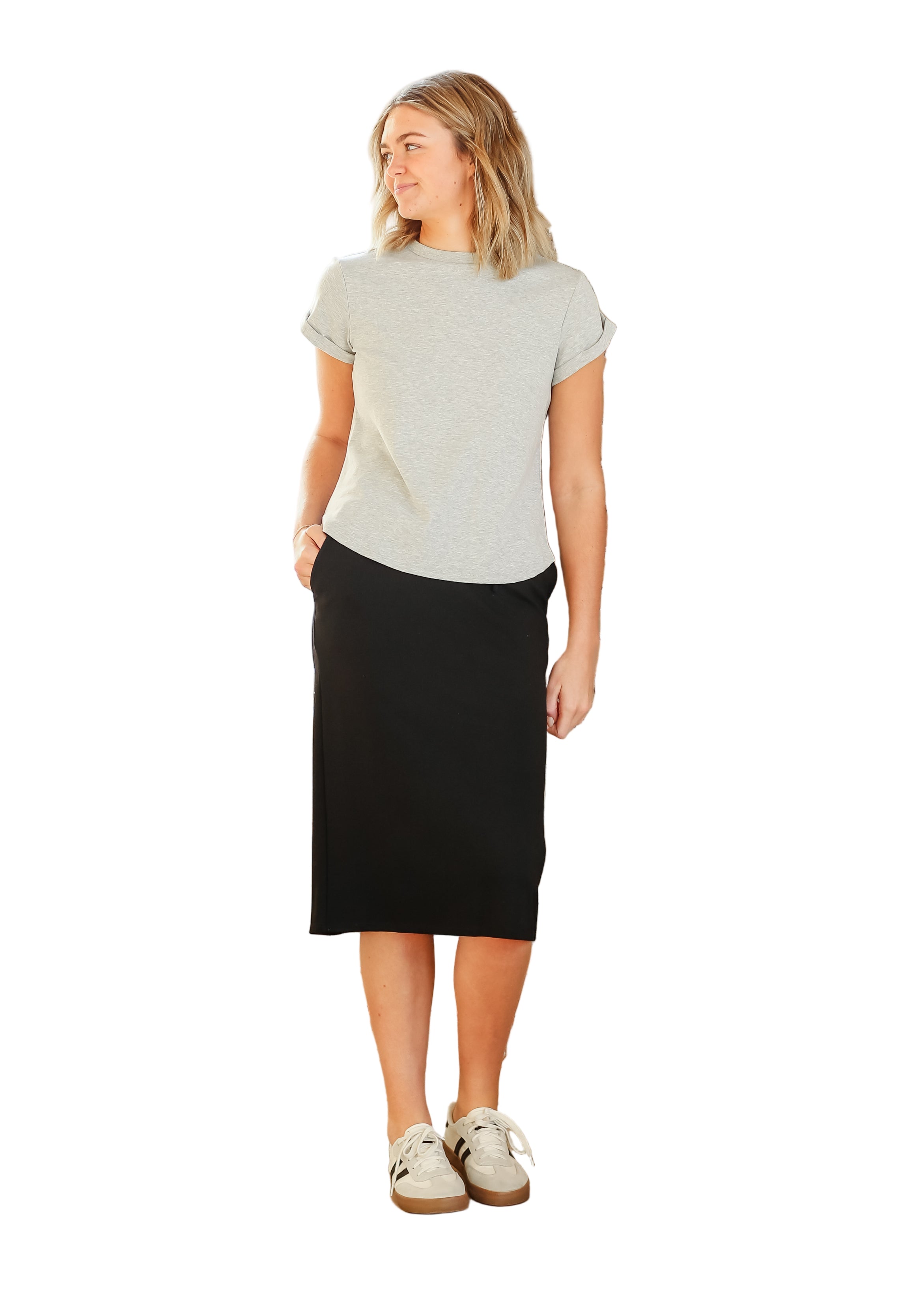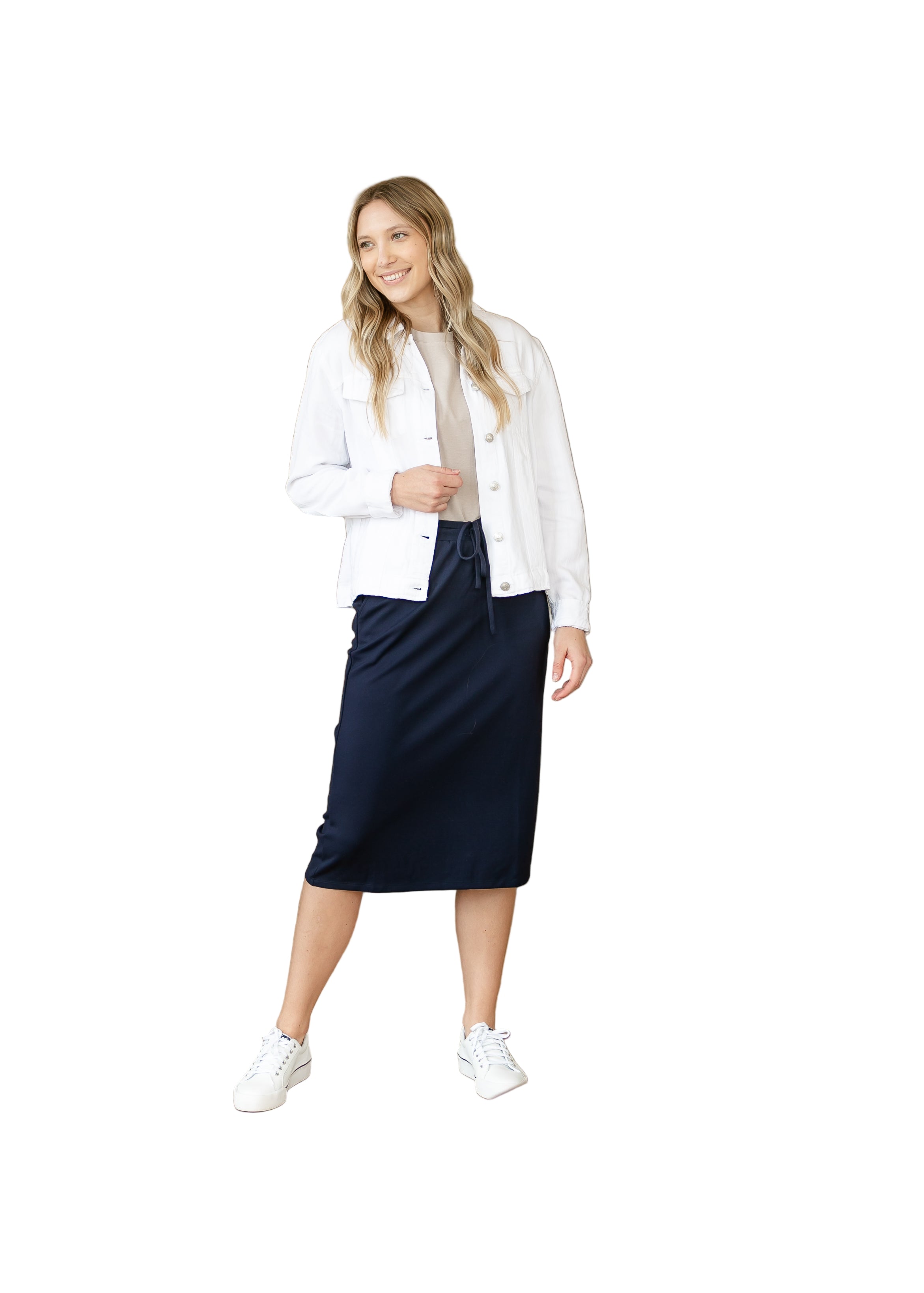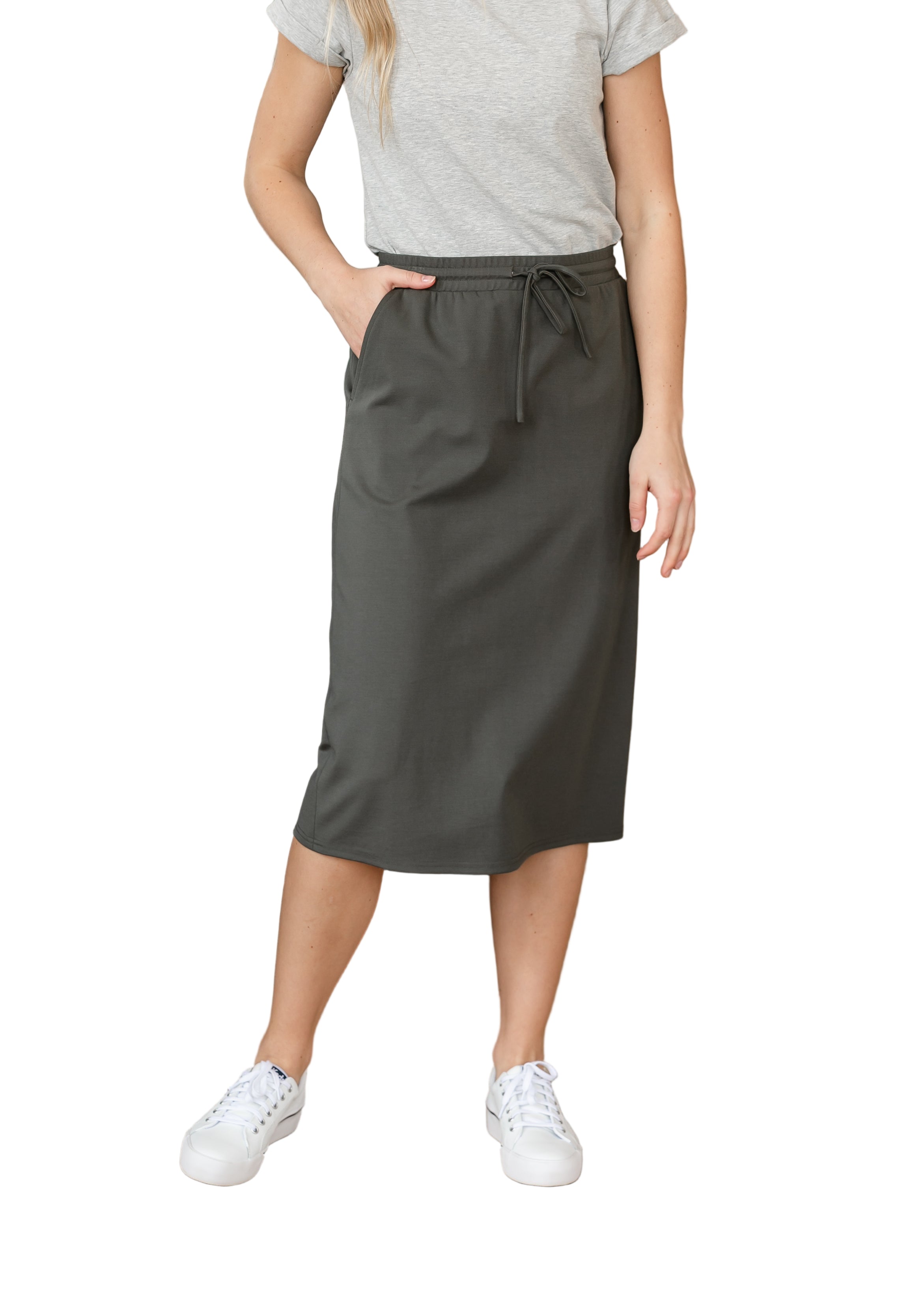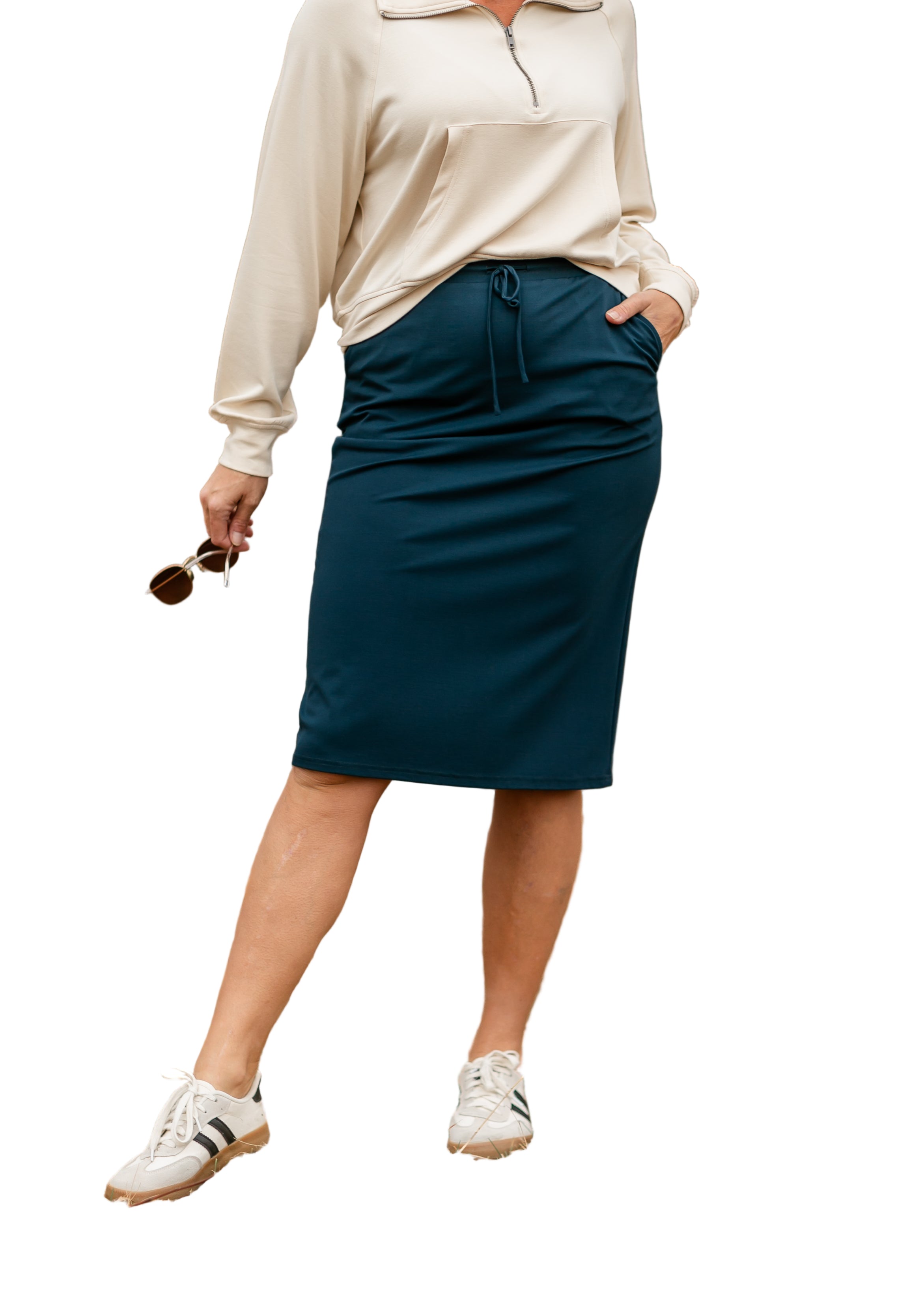 Embrace the allure of effortless elegance with the Jordan Knit Midi Skirt. This enchanting piece caresses your silhouette, offering a dreamy blend of comfort and style. The soft, stretchy fabric gently hugs your curves, while the adjustable drawstring waist ensures a perfect fit, making it a delightful companion for any occasion.