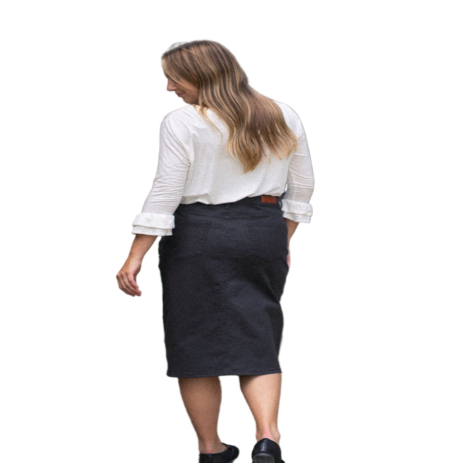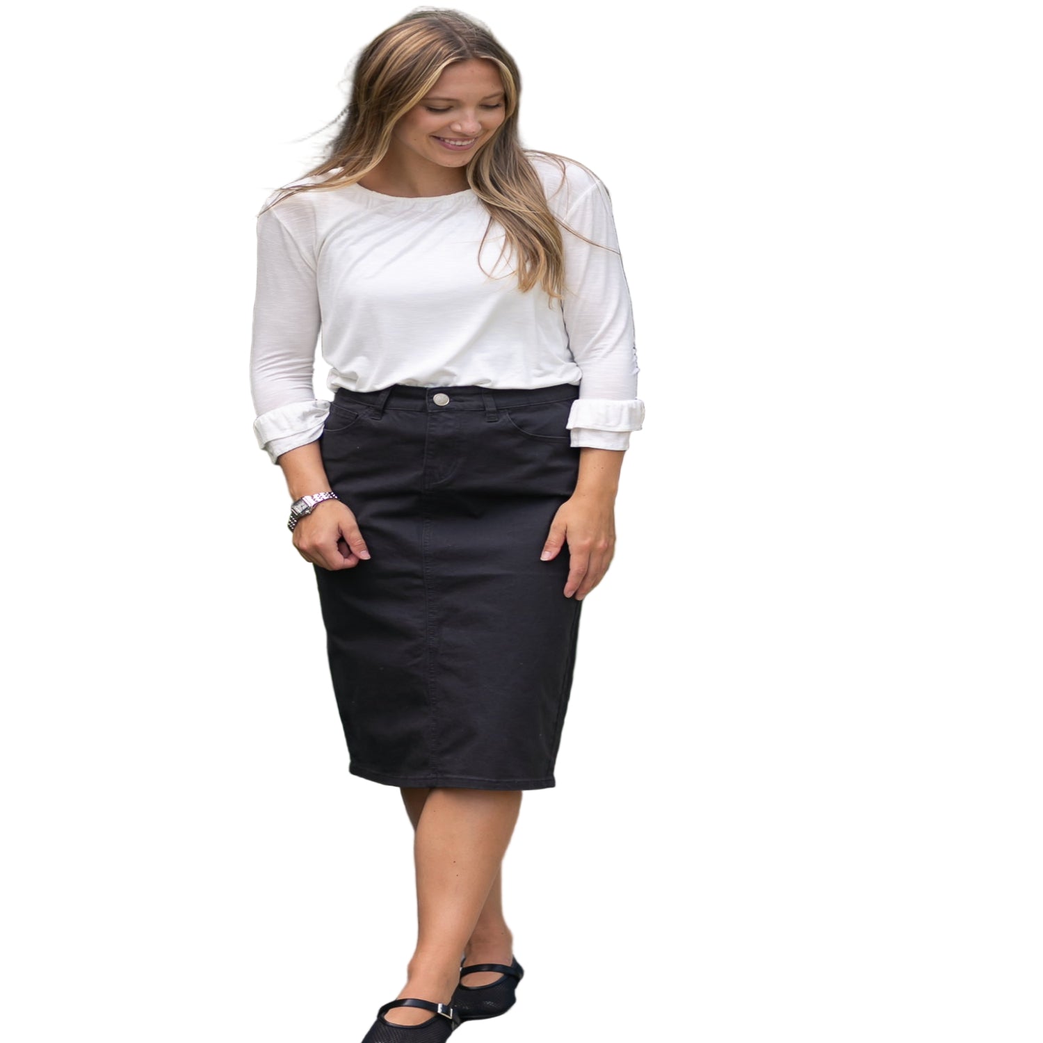 With its classic black wash, this skirt effortlessly complements your favorite layers, while the no-slit design ensures a clean and confident look. Slip into this dreamy garment, and let it become your cherished companion, evoking feelings of love and grace with every wear.