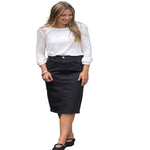 Embrace the allure of timeless elegance with the Remi Onyx Black Denim Midi Skirt. This enchanting piece caresses your silhouette, offering a flattering fit that whispers of romance and sophistication. The polished finish and modest midi length create a captivating harmony, perfect for any occasion.