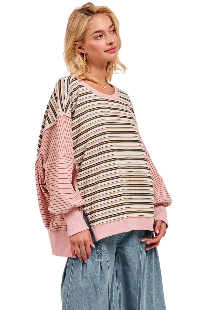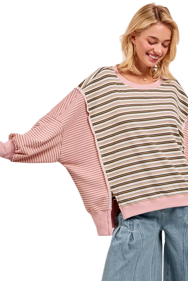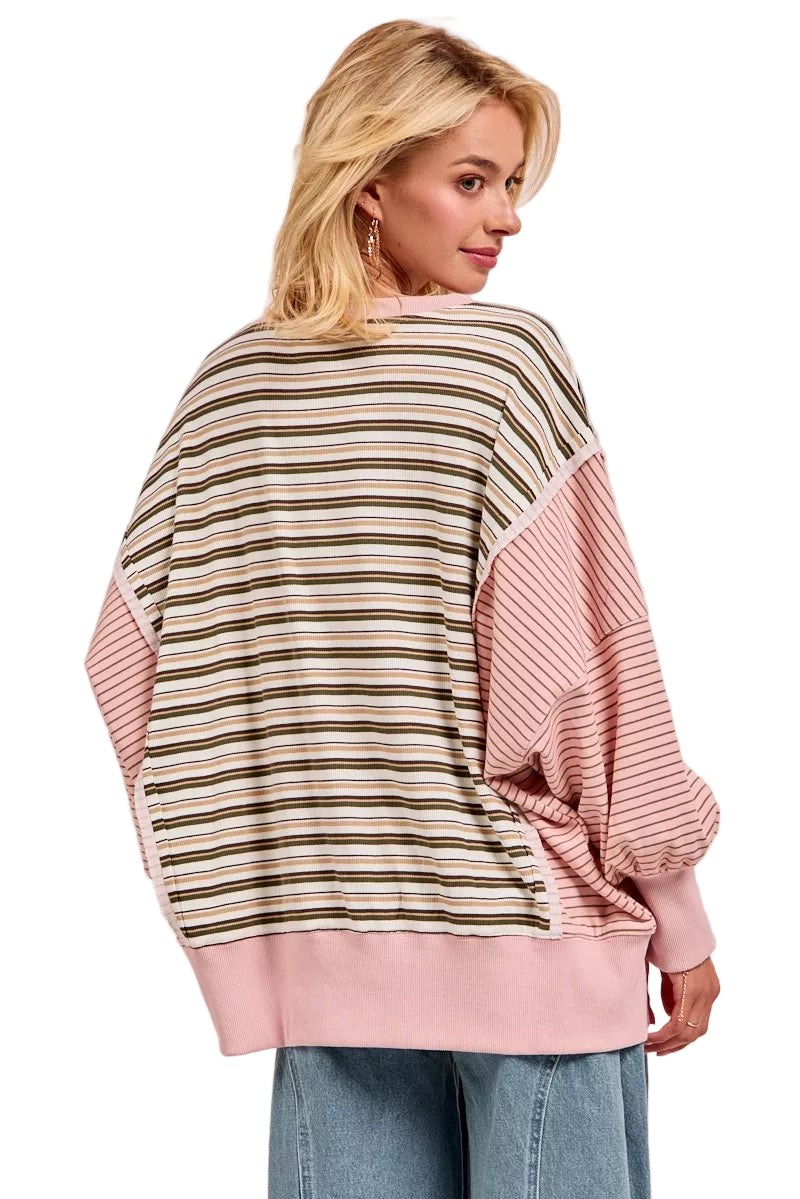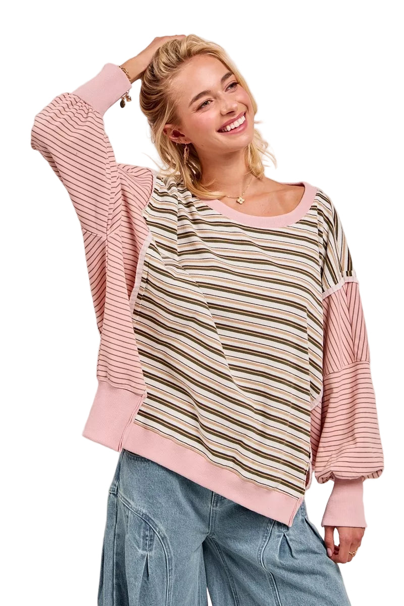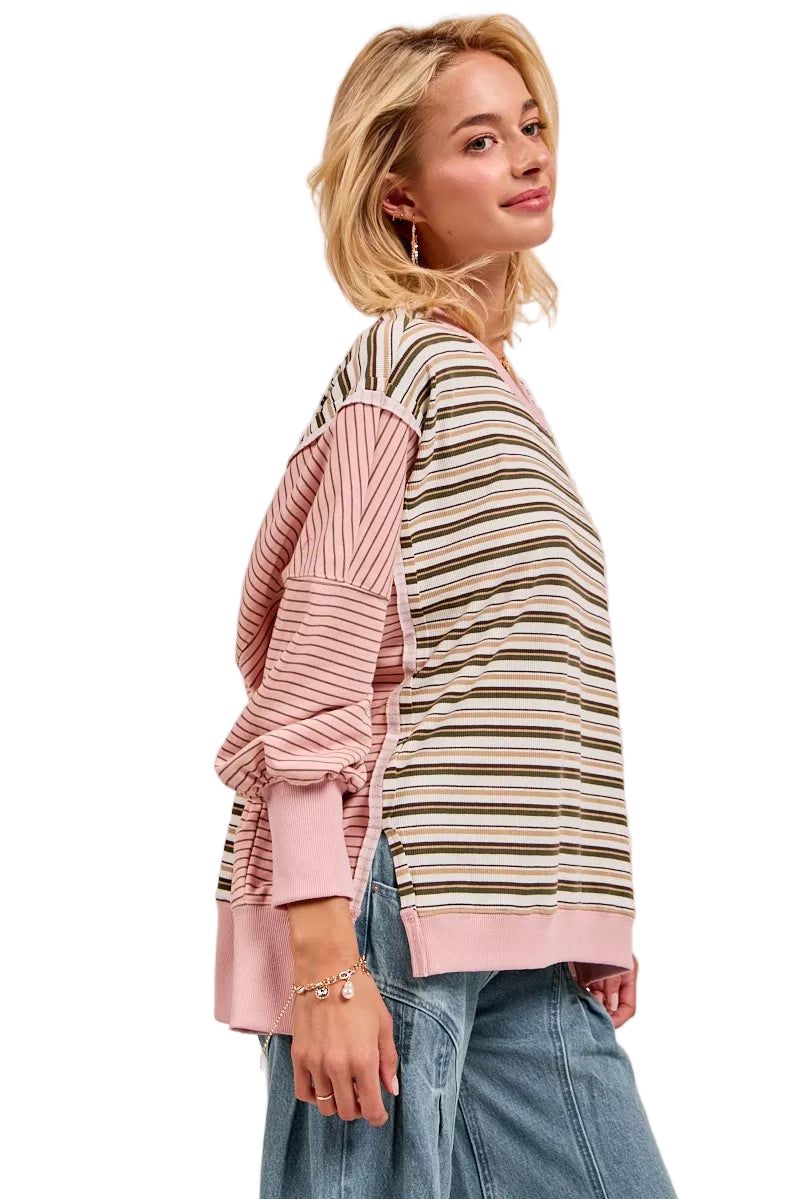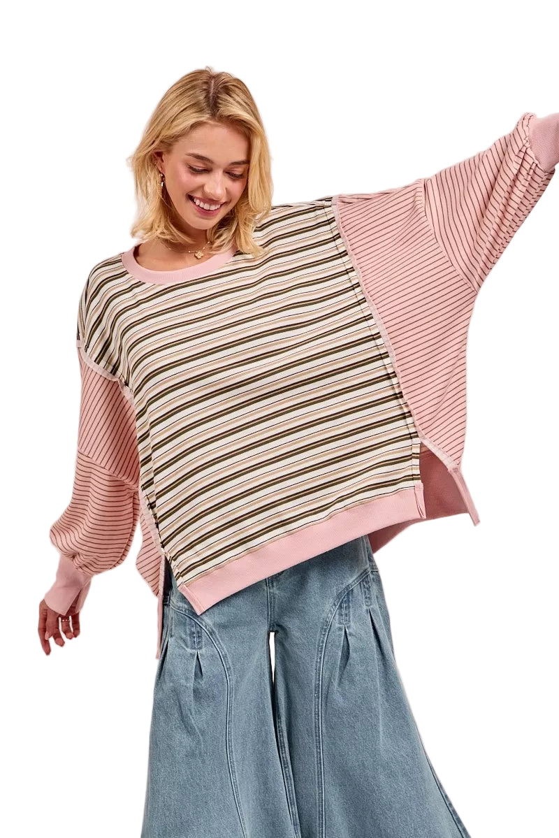 Embrace the allure of romance with the BiBi Stripe Mixed Top, a piece that whispers elegance and charm. The enchanting stripe pattern dances across the fabric, creating a modern silhouette that captivates the eye.