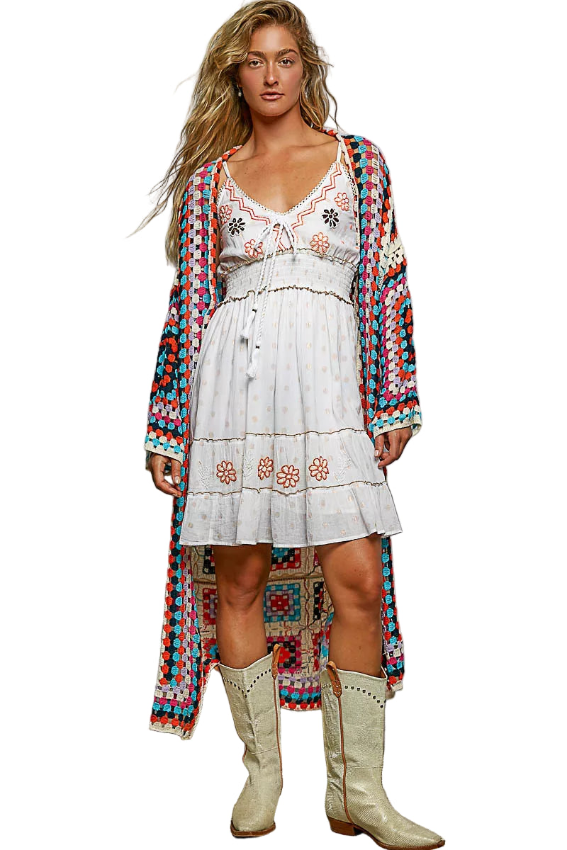 Wrap yourself in the enchanting embrace of the POL Open Front Crochet Cardigan, where romance meets comfort. This exquisite piece, adorned with delicate crochet detailing, whispers elegance with every stitch, inviting you to indulge in its cozy allure.