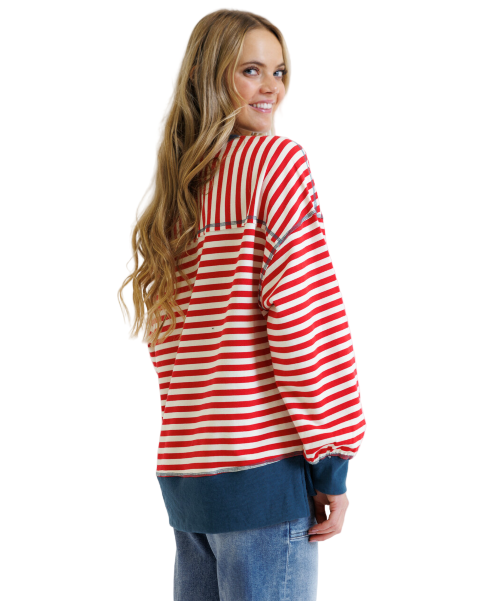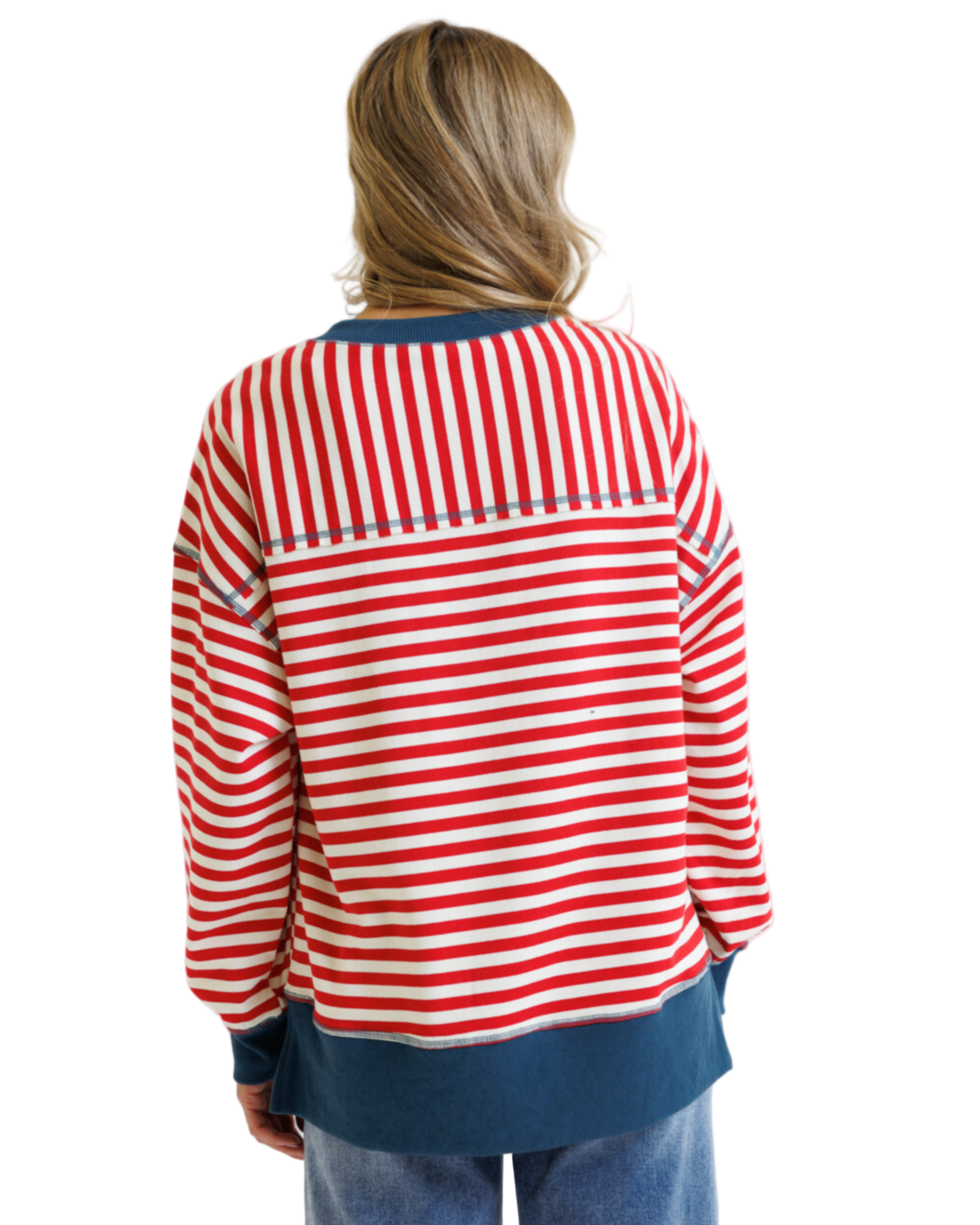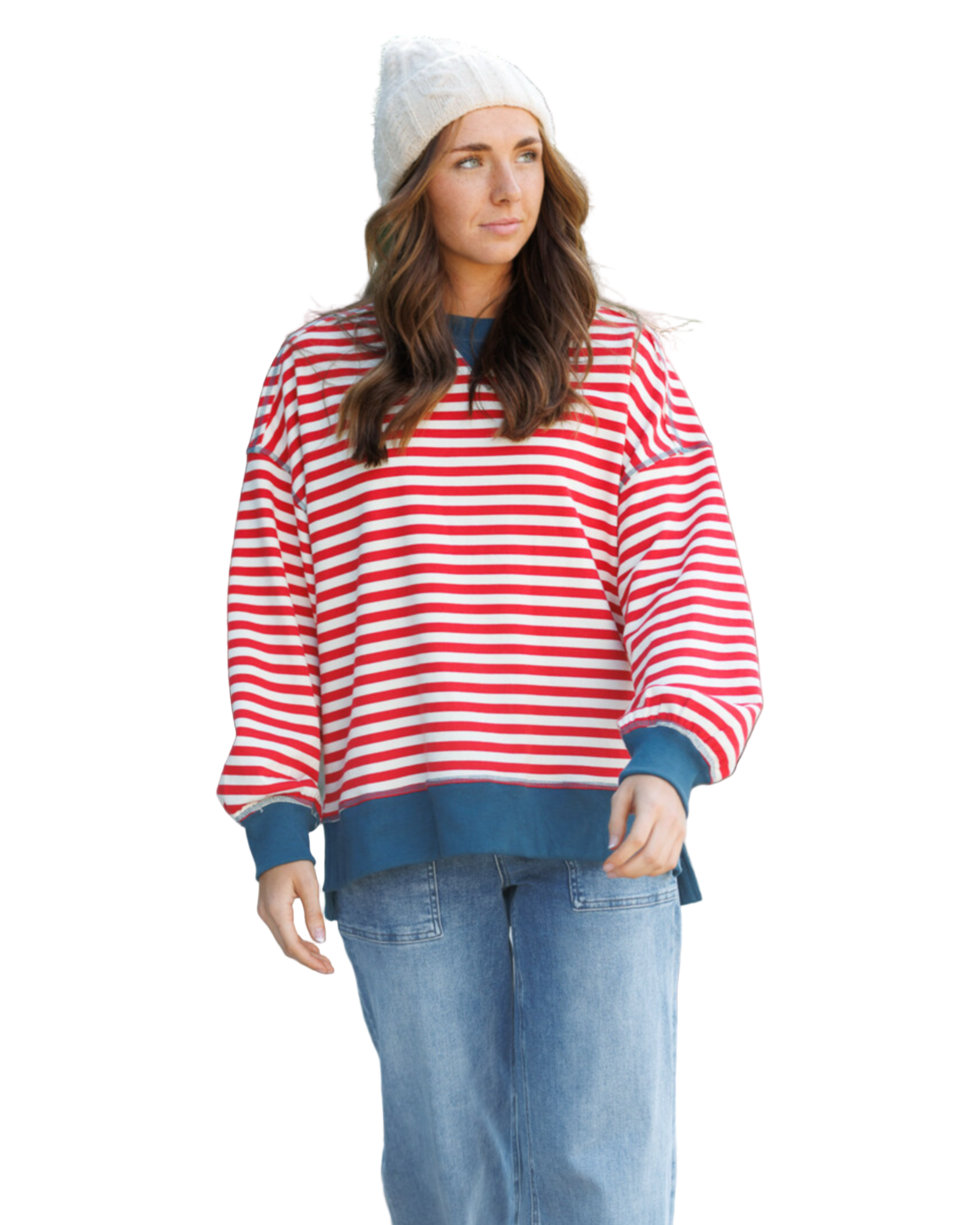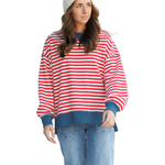 With ribbed accent hems that caress your silhouette, this piece is a perfect companion for lazy weekends or romantic strolls. Crafted from a soft blend of polyester, cotton, and rayon, it promises to be as gentle as a lover's touch. Let the Saturday Stripe Crew be your go-to for moments of blissful relaxation.