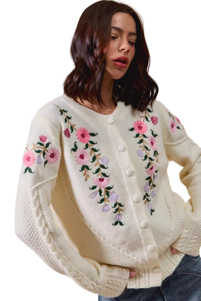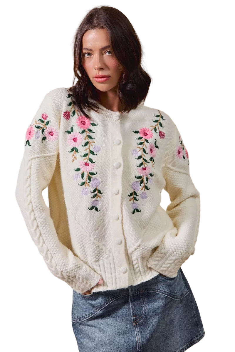 Wrap yourself in the delicate embrace of the SO ME Floral Embroidered Coquette Sweater Cardigan, where elegance meets romance. Each intricate floral embroidery whispers sweet nothings, inviting you to indulge in its charm.