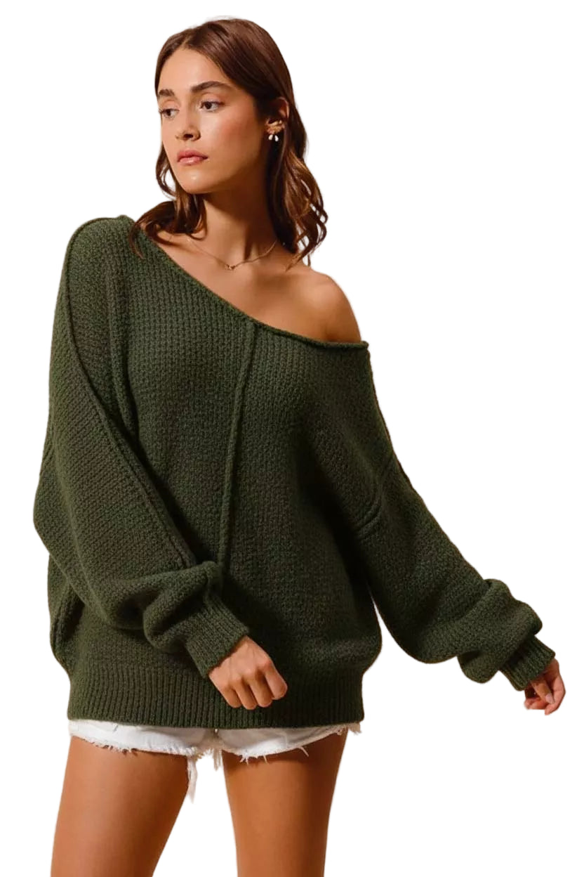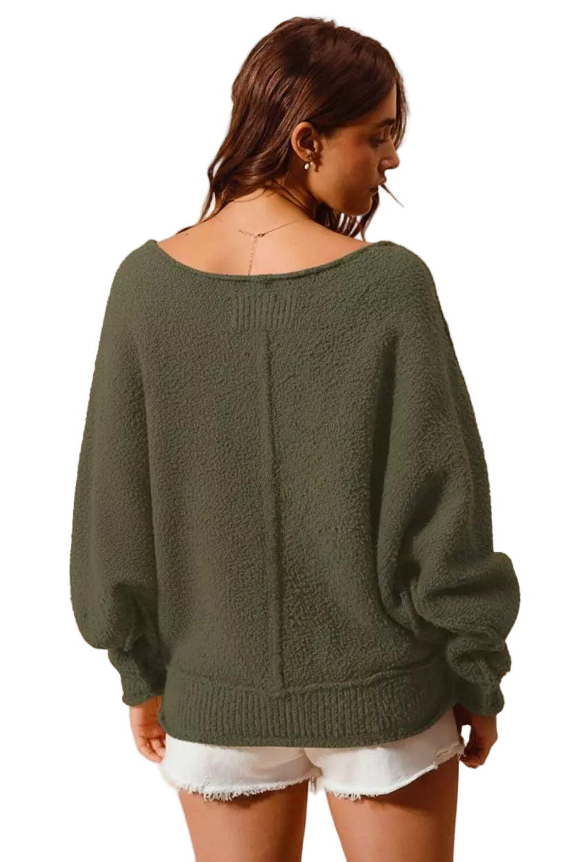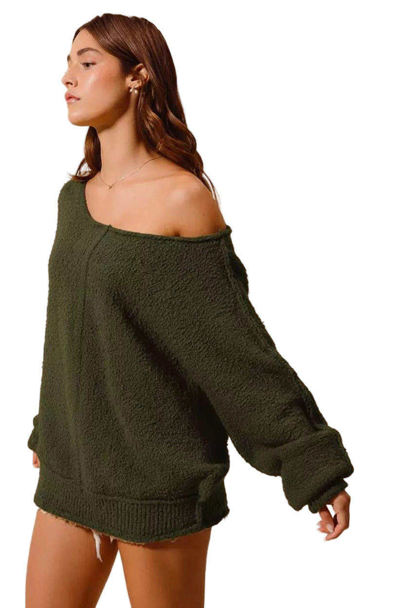 SO ME Loose Fit Exposed Seam Slouchy Boucle Sweater