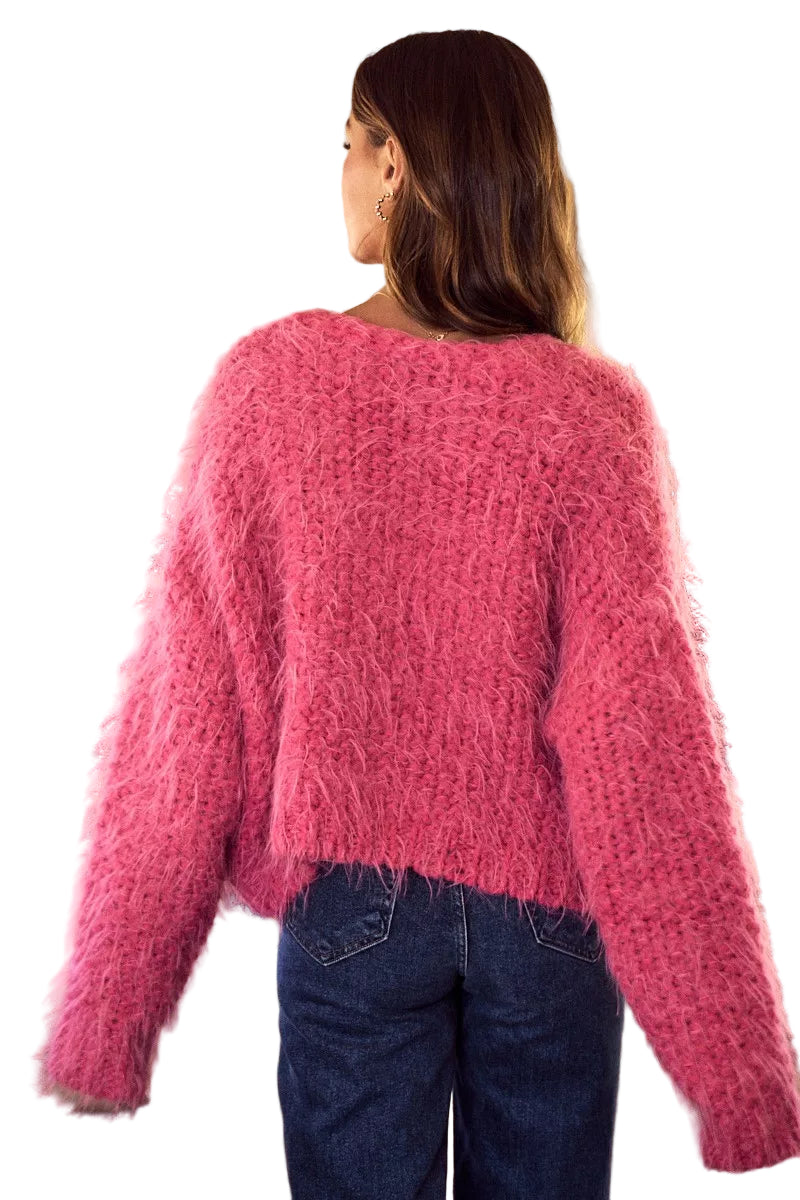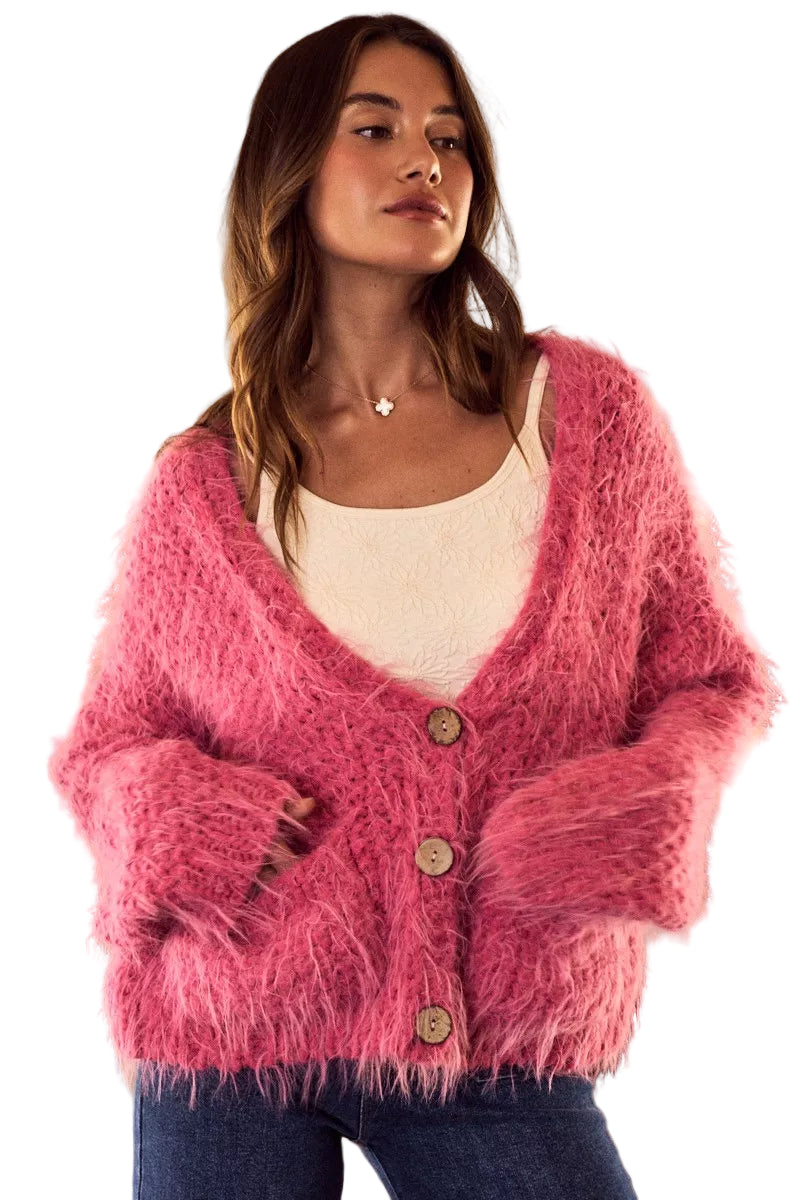 Wrap yourself in the tender embrace of the SO ME Soft Touch Hairy Loose Fit Cozy Sweater Cardigan. This enchanting piece, with its soft touch and delightful texture, whispers comfort and warmth, inviting you to indulge in cozy moments.