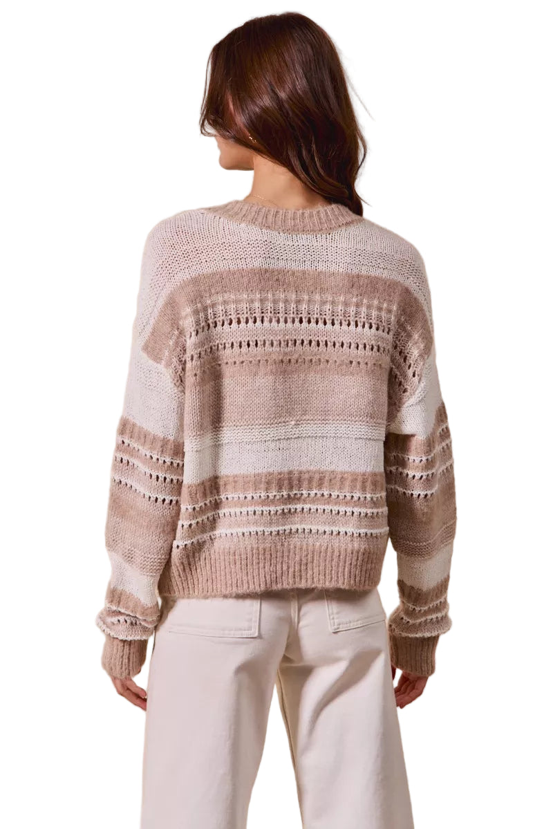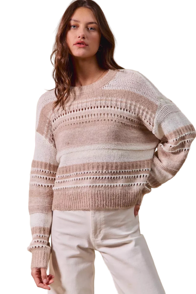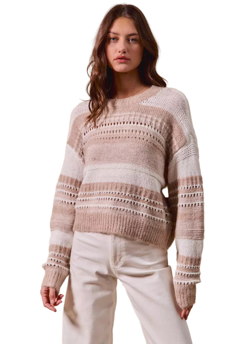 SO ME Variegated Stripe Textured Loose Fit Sweater
