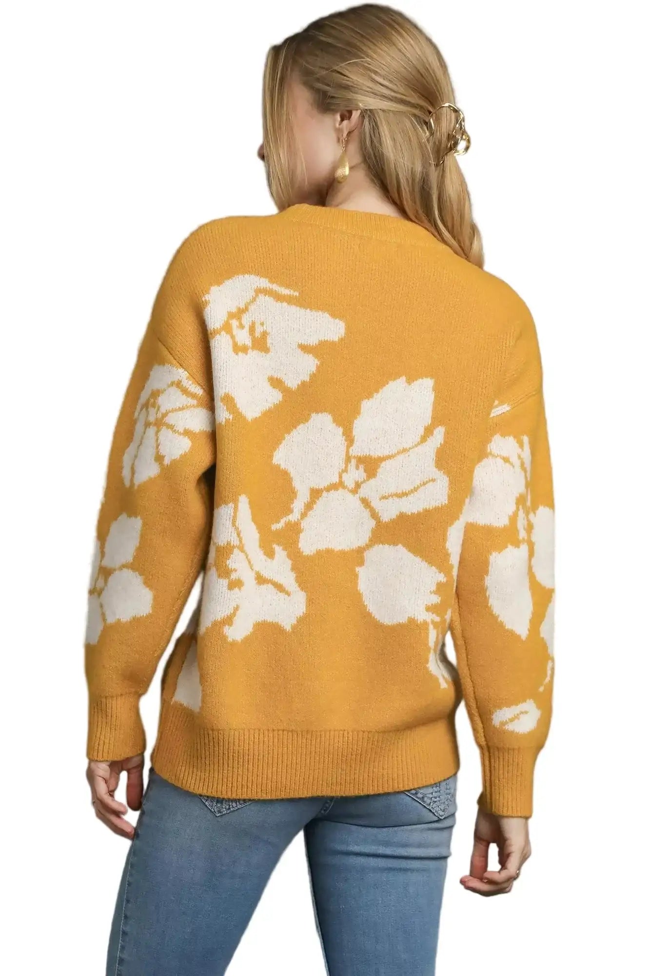 Wrap yourself in the enchanting embrace of the Umgee Floral Long Sleeve Sweater, where elegance meets comfort. This exquisite piece, adorned with a delicate floral pattern, whispers romance with every wear, inviting you to bask in its charm.