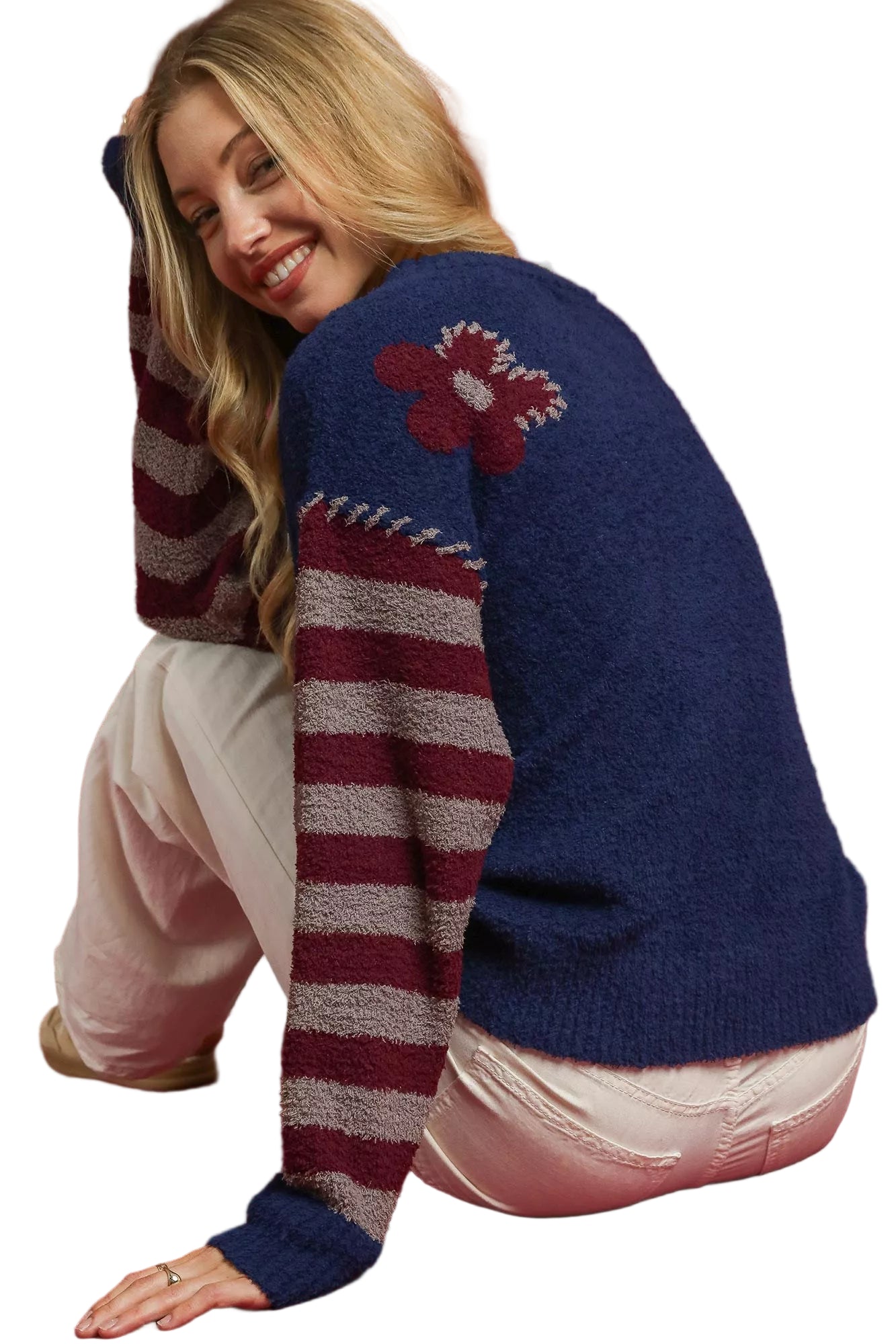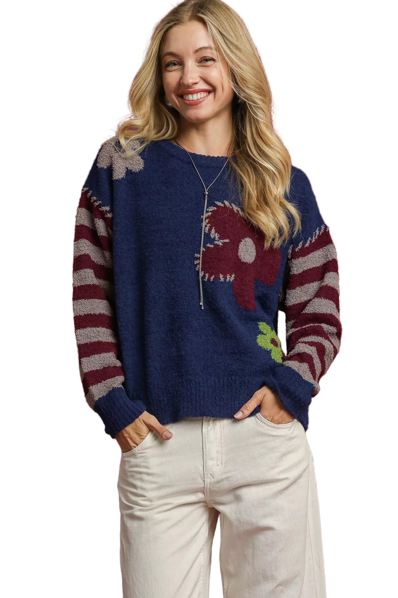 Wrap yourself in the enchanting embrace of the Flower Jacquard Striped Long Sleeve Sweater, where romance meets style. This exquisite piece, adorned with delicate floral jacquard, whispers elegance with every thread, inviting admiration and warmth.