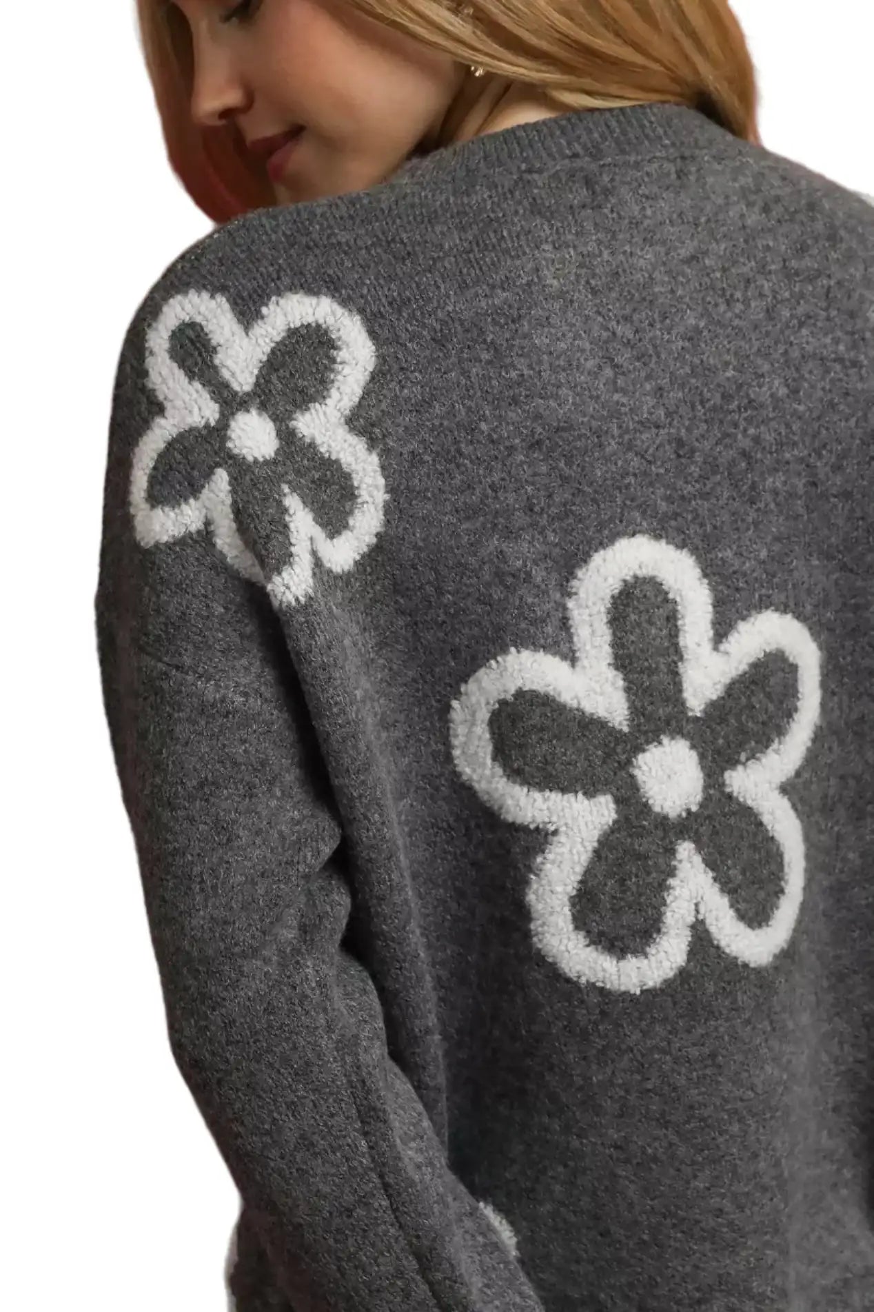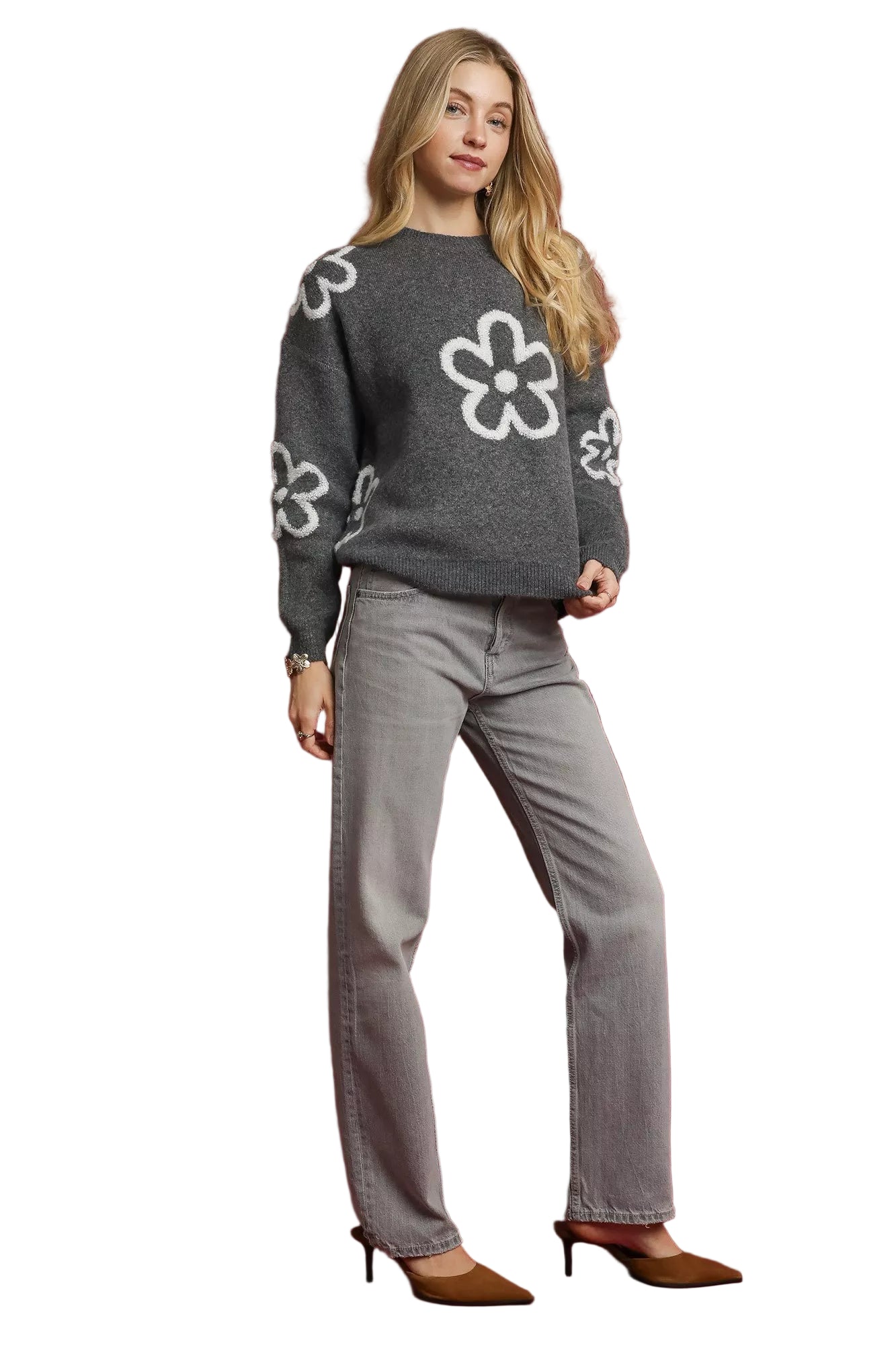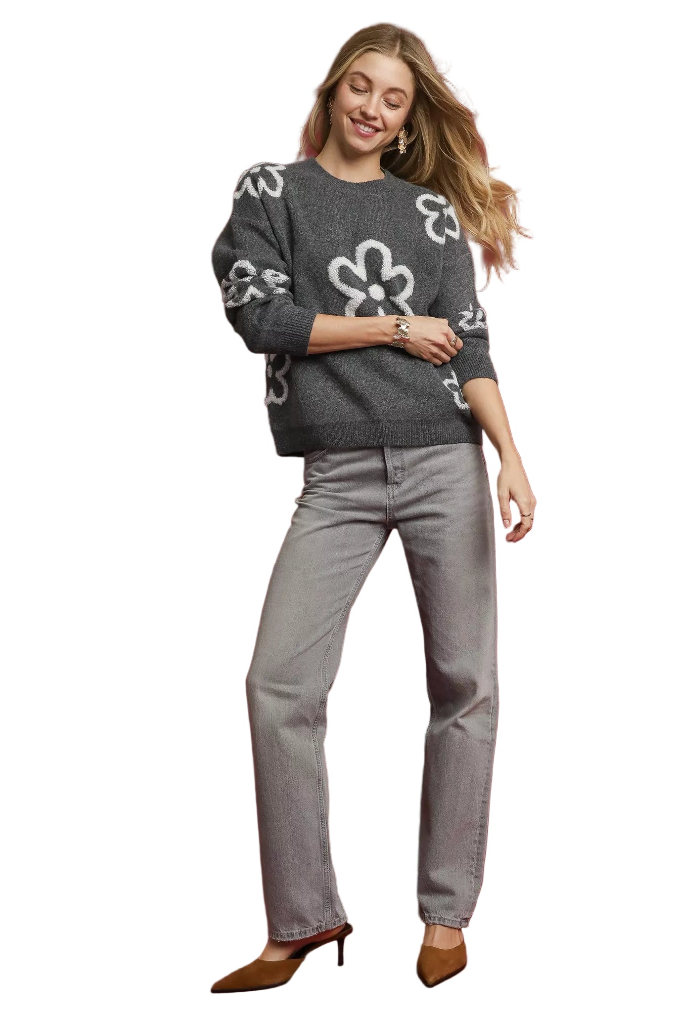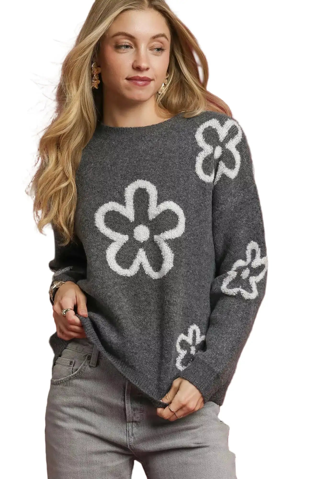 Wrap yourself in the enchanting embrace of the Umgee Round Neck Sweater with Floral Accents. This delightful piece whispers romance with its delicate floral details, inviting you to explore the beauty of every moment.