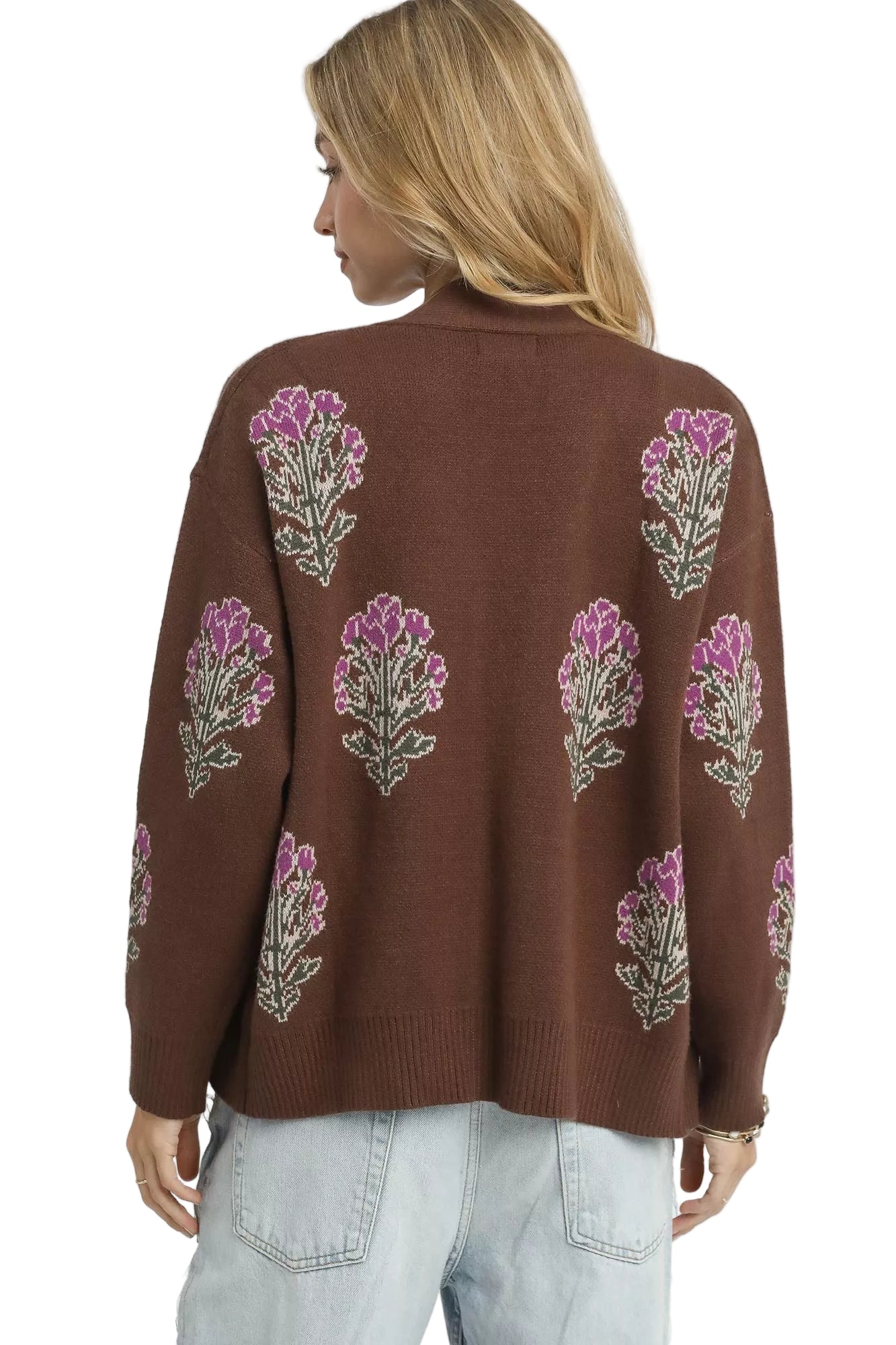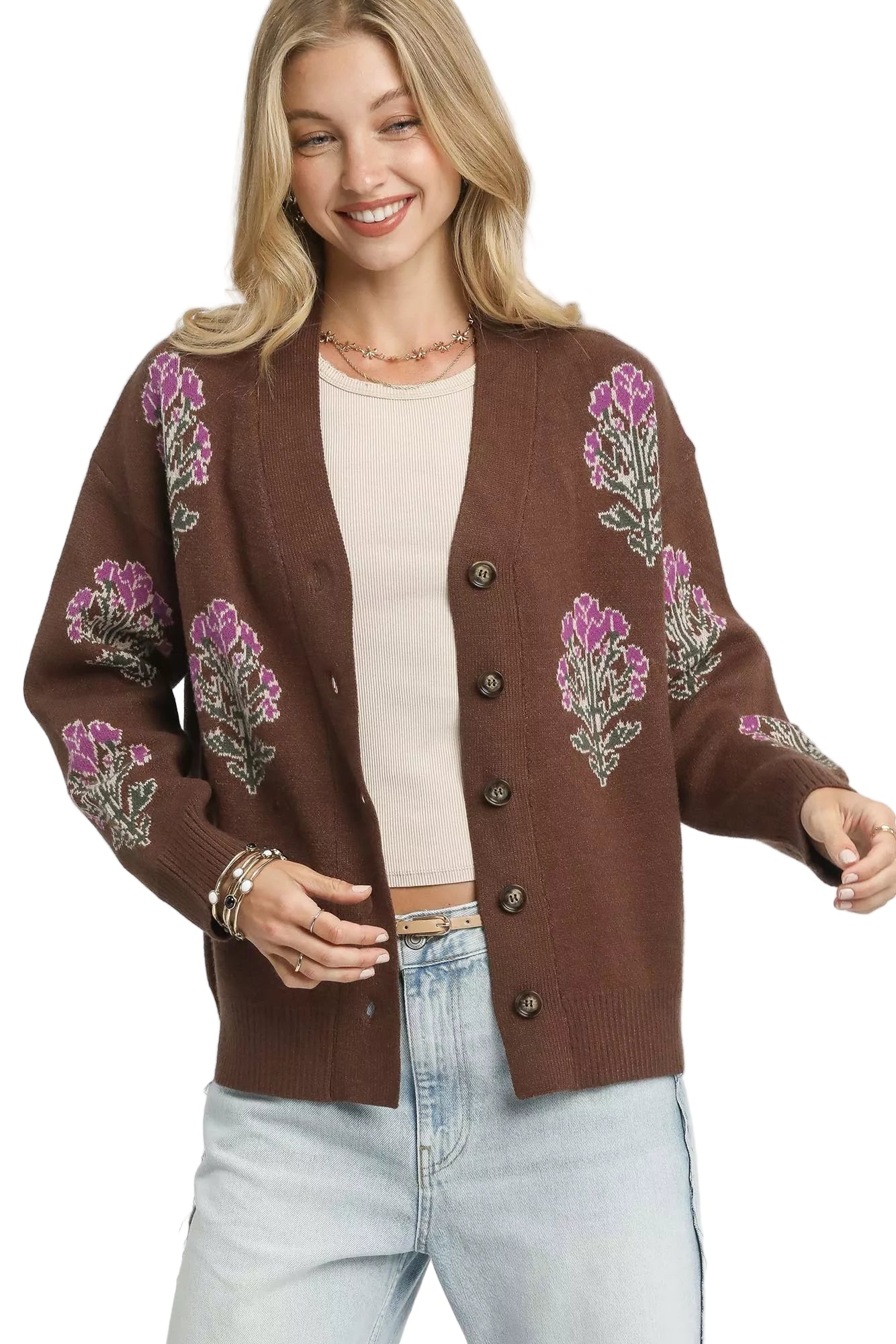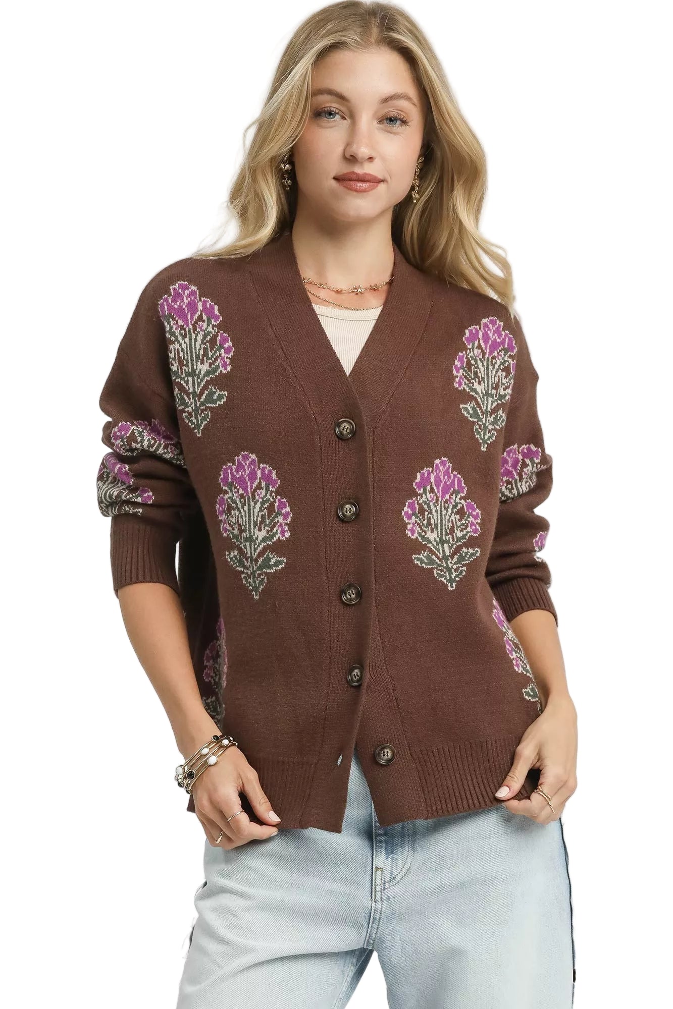 Wrap yourself in the tender embrace of the Umgee Single Flower Stem Jacquard Cardigan Sweater, where comfort meets elegance. This enchanting piece, adorned with a delicate floral jacquard, whispers romance with every stitch, inviting you to indulge in its soft, cozy knit blend.