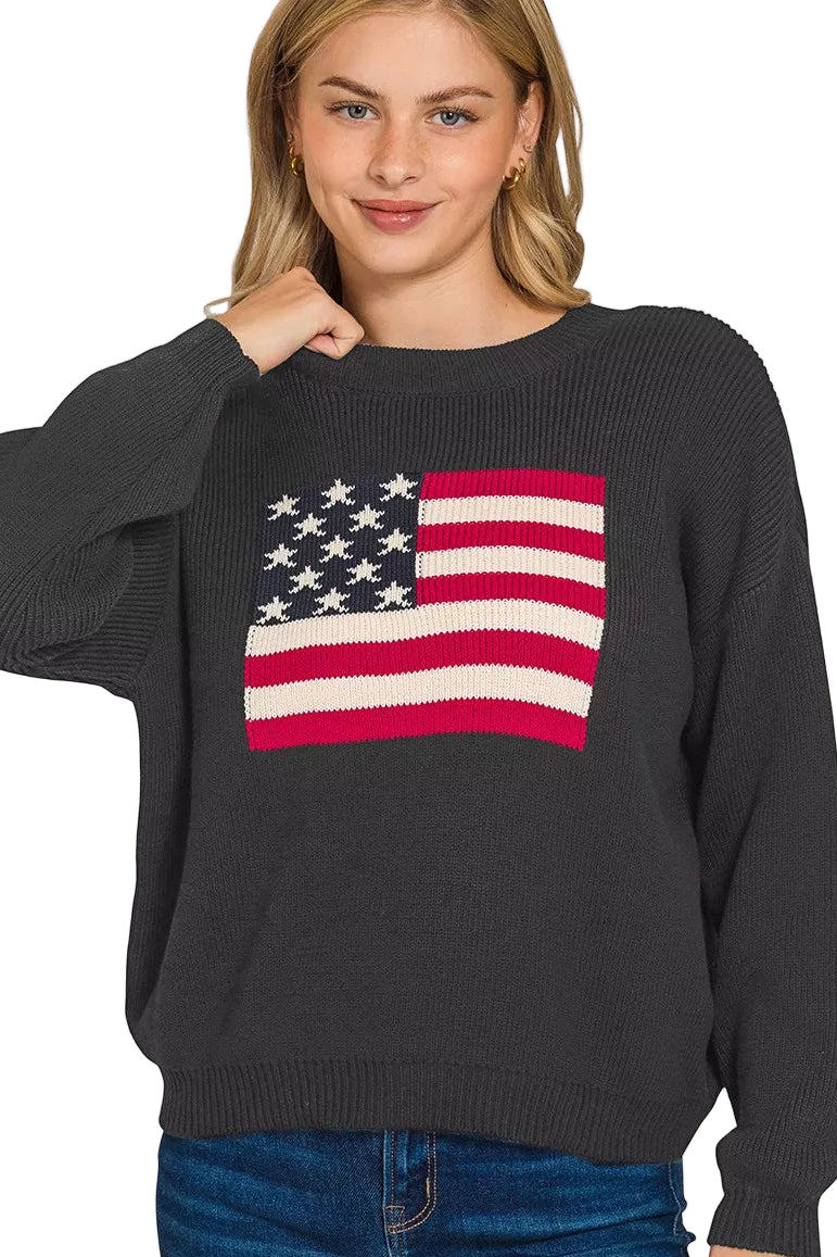 Wrap yourself in the warmth of love and patriotism with our American Flag Crew Neck Sweater. This enchanting piece, adorned with the iconic stars and stripes, whispers tales of freedom and unity, inviting you to celebrate your spirit in style.