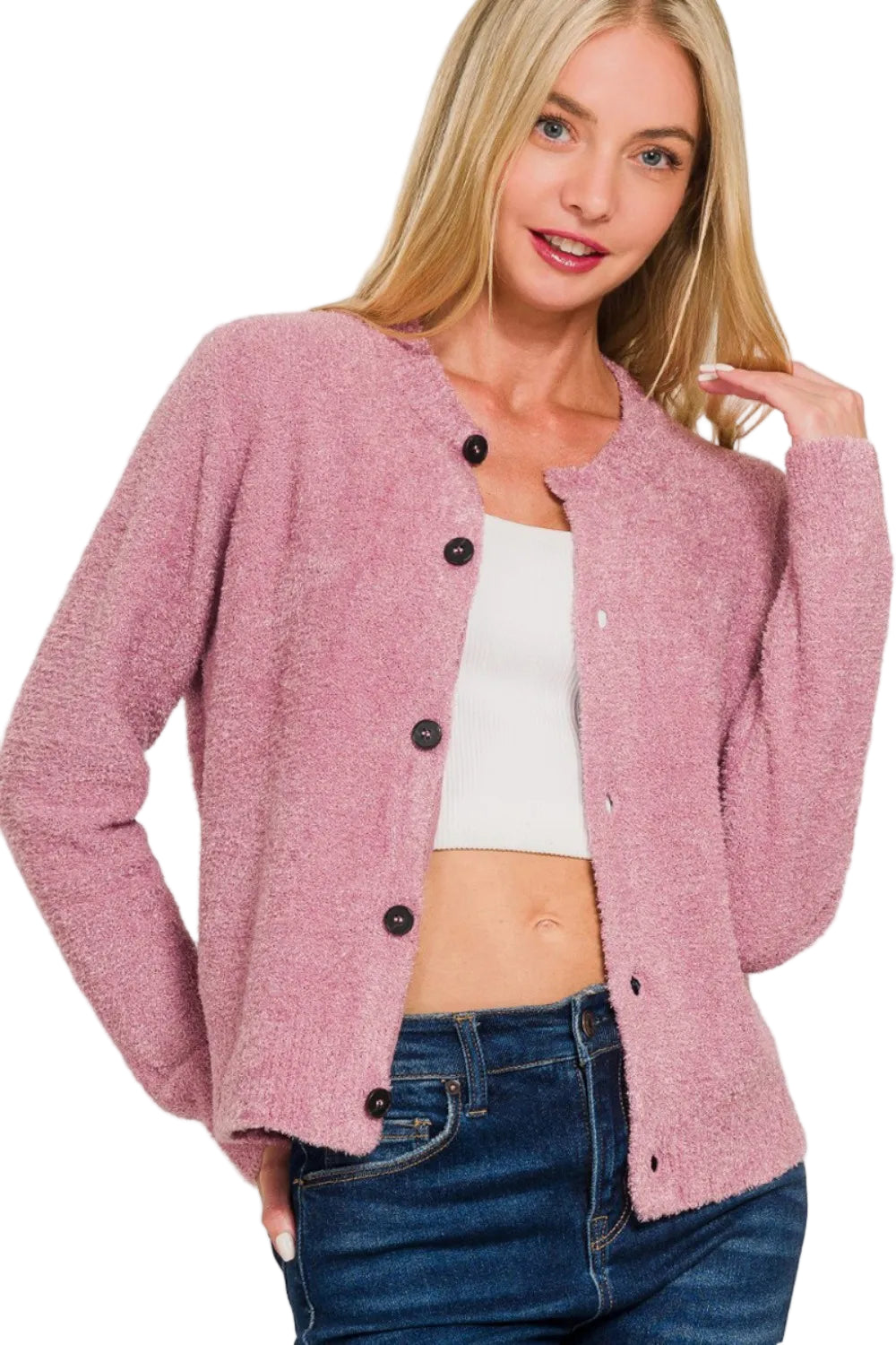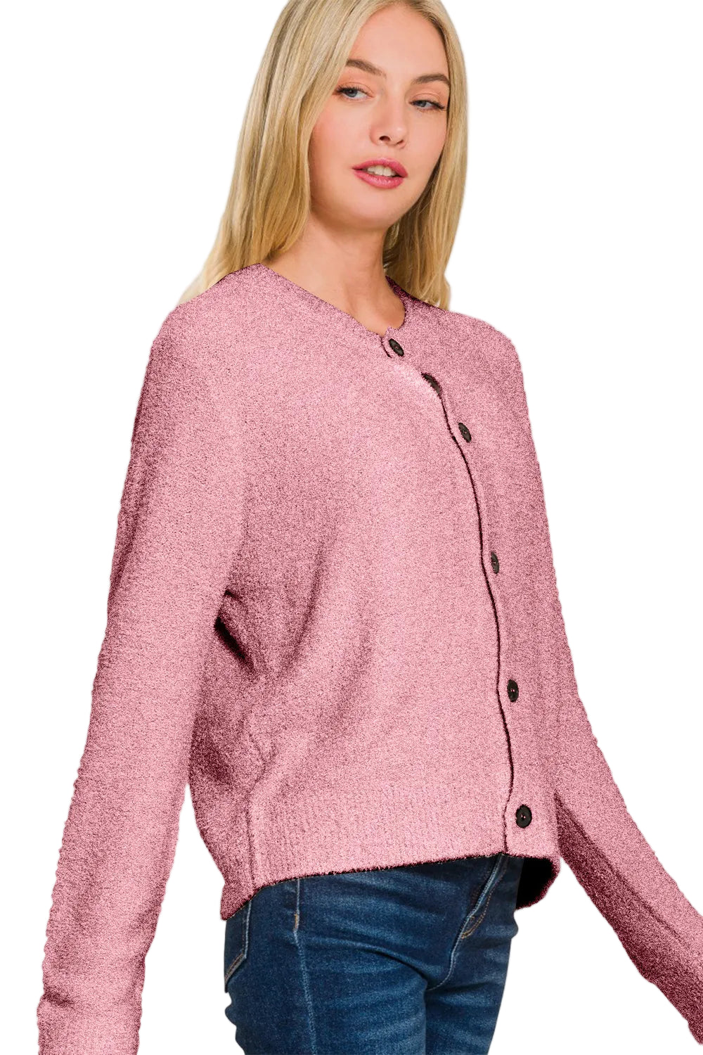 Wrap yourself in the warmth of the Zenana Button Down Long Sleeve Sweater Cardigan, a piece that whispers romance with every stitch. Its classic button-front design invites you to layer it over your favorite tops or dresses, creating a canvas for your unique style.
