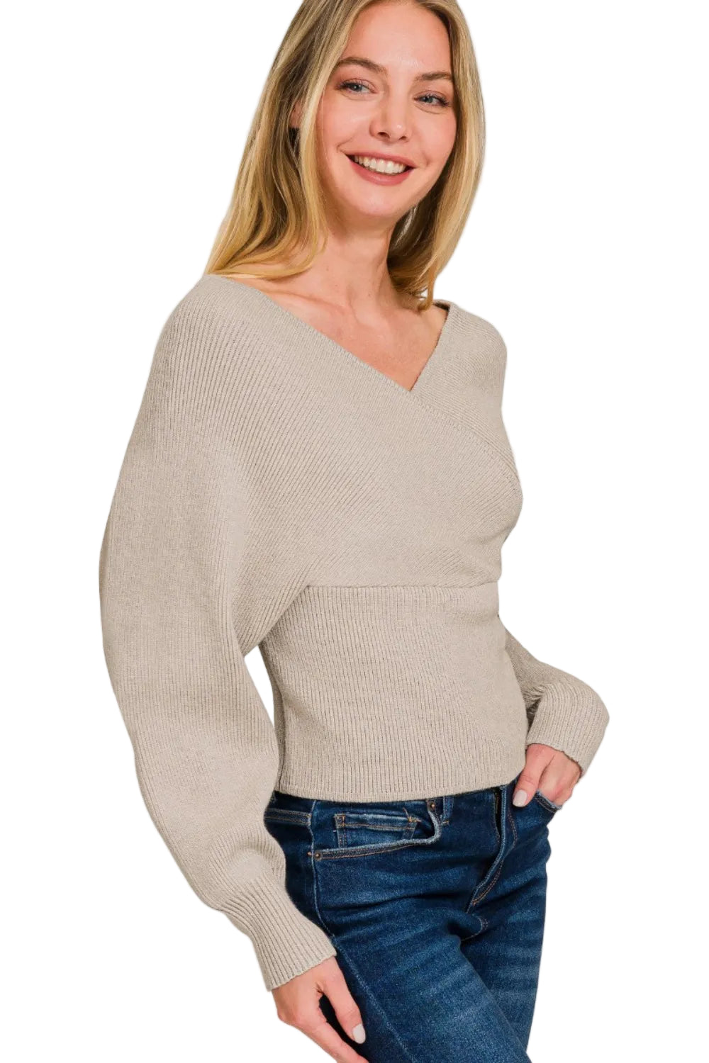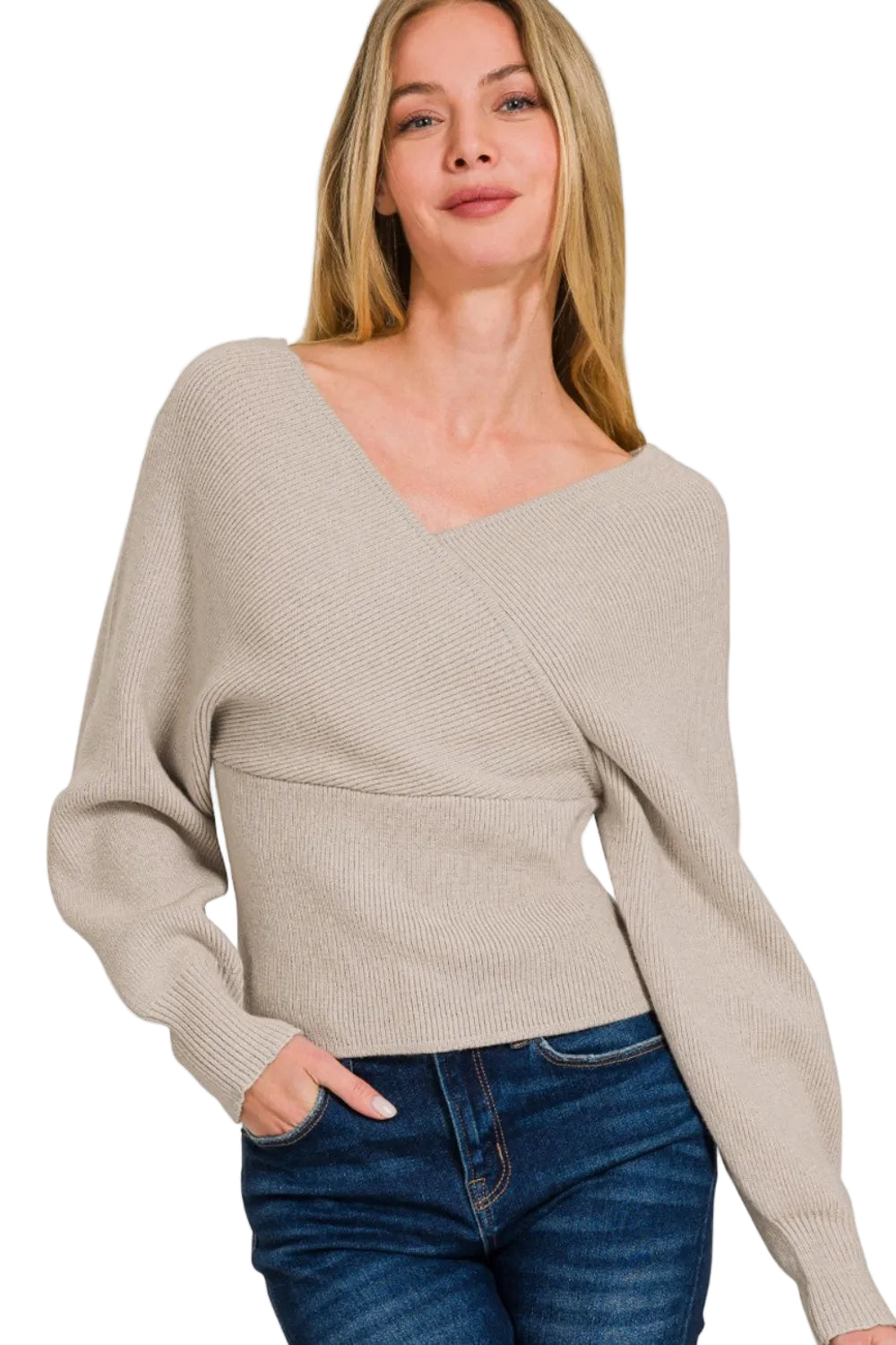 Zenana Cross Wrap Rib Long Sleeve Sweater