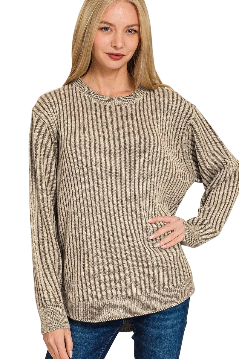 Wrap yourself in the warmth of romance with the Zenana Curved Hem Two-Tone Ribbed Sweater. This enchanting piece, with its unique two-tone design, whispers elegance and charm, making every moment feel special.