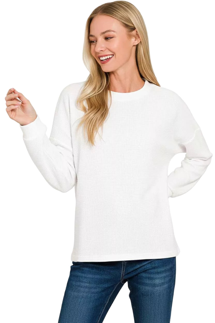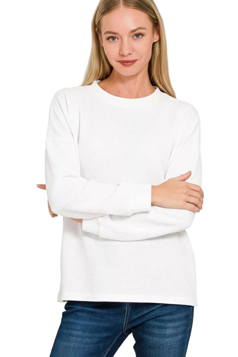 Wrap yourself in the gentle embrace of the Zenana Double Knit Round Neck Long Sleeve Top, a piece that whispers romance with every wear. Its soft, double knit fabric caresses your skin, inviting you to indulge in comfort while exuding effortless elegance.