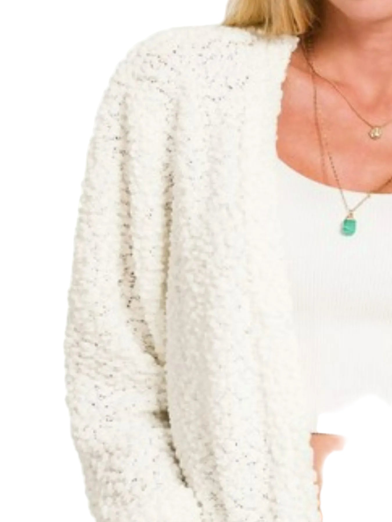Wrap yourself in the tender embrace of the Zenana Long Sleeve Popcorn Sweater Cardigan, where comfort meets romance. This oversized cardigan, with its plush teddy bear texture, invites you to indulge in warmth and softness, making every moment feel like a cozy evening by the fire.