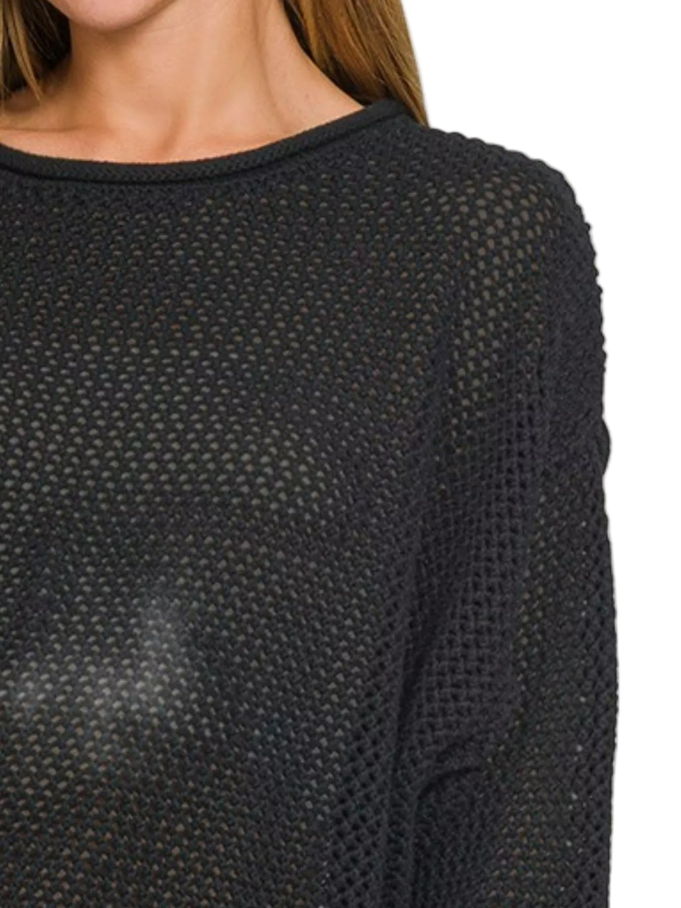 The classic black hue dances effortlessly with your wardrobe, while the relaxed fit invites you to indulge in casual moments or semi-casual gatherings. With a timeless round neckline and long sleeves, this pullover flatters every silhouette, making it a cherished staple for layering or wearing solo.