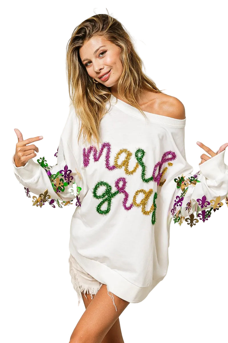 This pullover, a perfect blend of comfort and style, wraps you in warmth as you dance through parades or gather with cherished friends. Pair it effortlessly with jeans or leggings, and let your Mardi Gras spirit shine brightly, making every moment a cherished memory.
