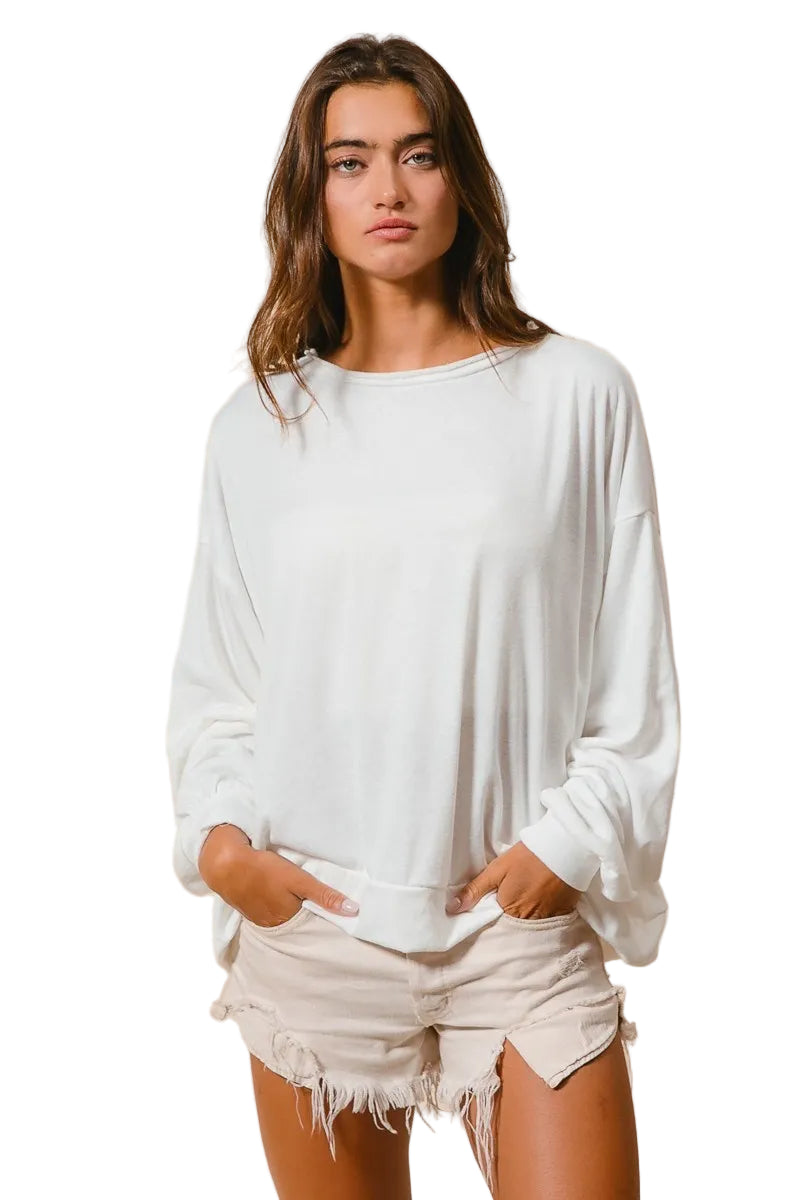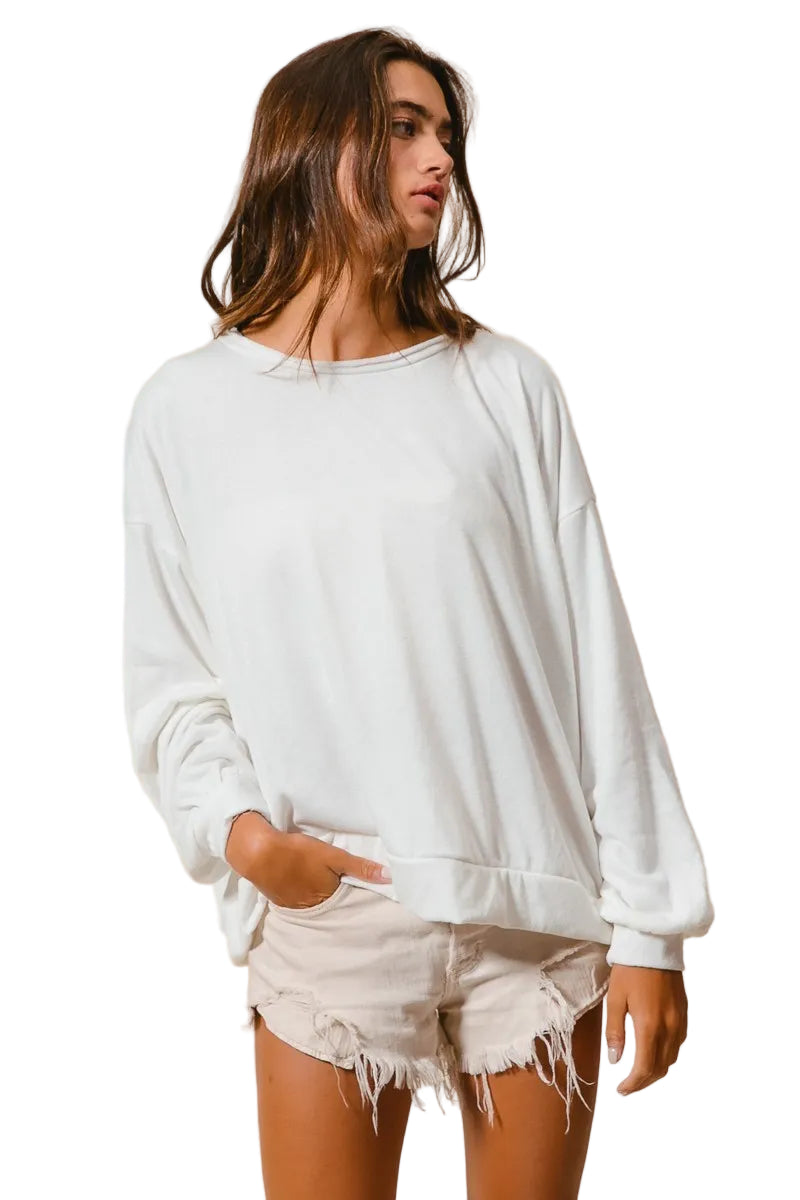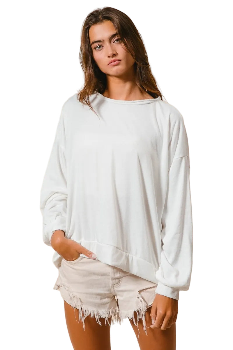 The unique cut edge band adds a touch of modern allure, making it a delightful companion for your everyday adventures. With its relaxed fit, this pullover effortlessly enhances your silhouette, allowing you to express your laid-back yet chic style. Embrace the art of cozy elegance with this enchanting addition to your wardrobe.