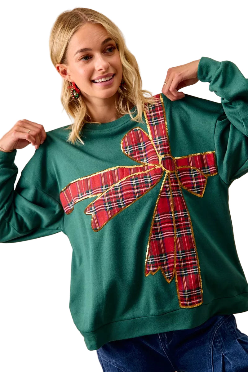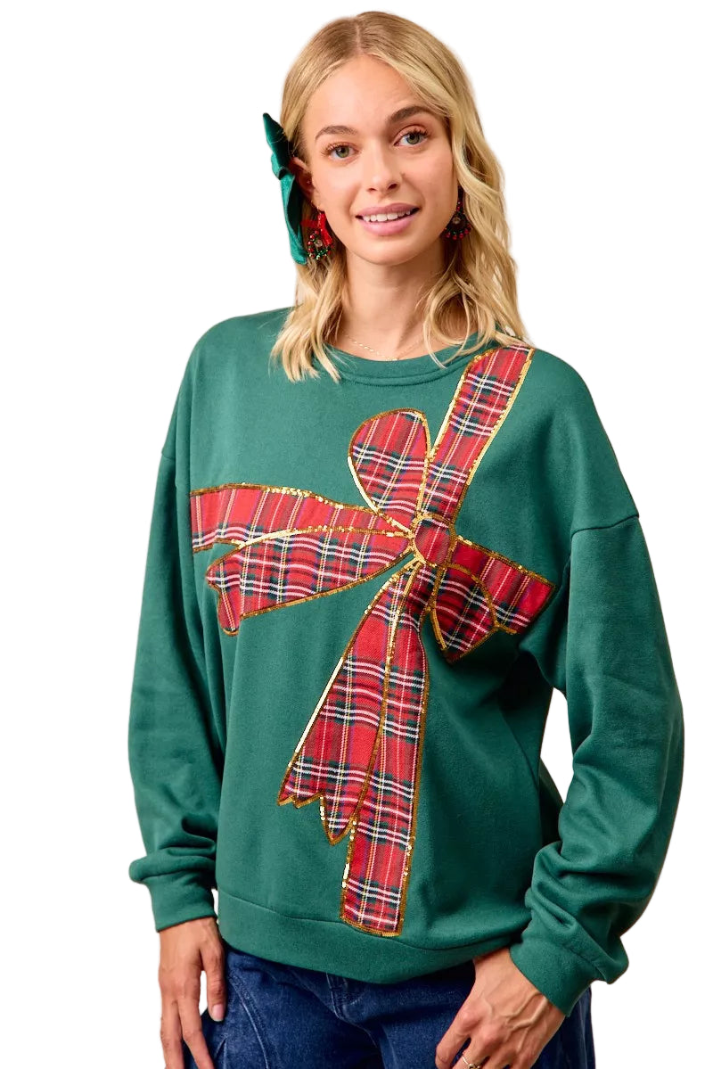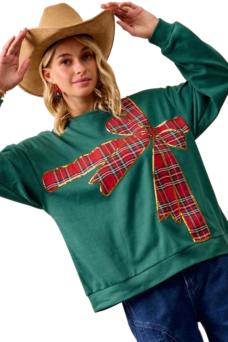Wrap yourself in warmth and charm with the BiBi Plaid Ribbon Bow Detail Christmas Fleece Pullover. This delightful piece, adorned with a festive plaid ribbon bow, whispers sweet nothings of holiday cheer, inviting you to embrace the season's magic.