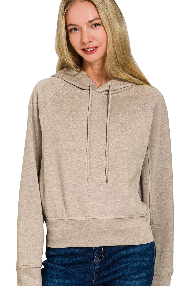 Wrap yourself in the tender embrace of the Zenana Drawstring Scuba Hoodie, where comfort meets elegance. This hoodie, crafted from a luxurious blend of materials, whispers sweet nothings of style and warmth, inviting you to indulge in its cozy allure.