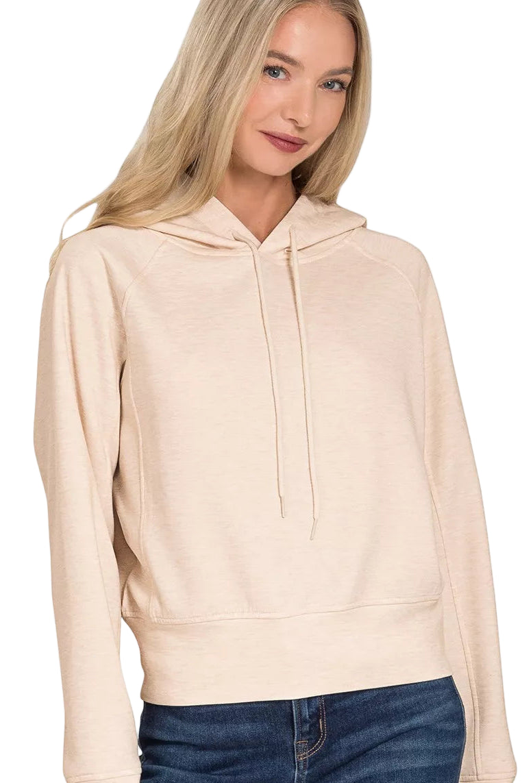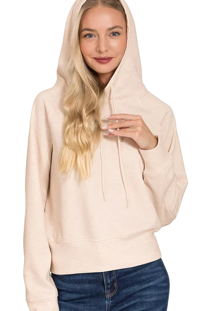 Wrap yourself in the tender embrace of the Zenana Drawstring Scuba Hoodie, where comfort meets elegance. This hoodie, crafted from a luxurious blend of materials, whispers sweet nothings of style and warmth, inviting you to indulge in its cozy allure.