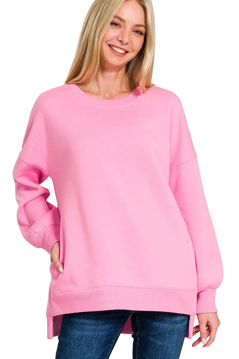 Wrap yourself in the tender embrace of our Zenana Fleece Hi-low Boyfriend Sweatshirts, where comfort meets romance. The soft fleece caresses your skin, inviting you to indulge in cozy moments, whether you're lounging at home or strolling through the park.