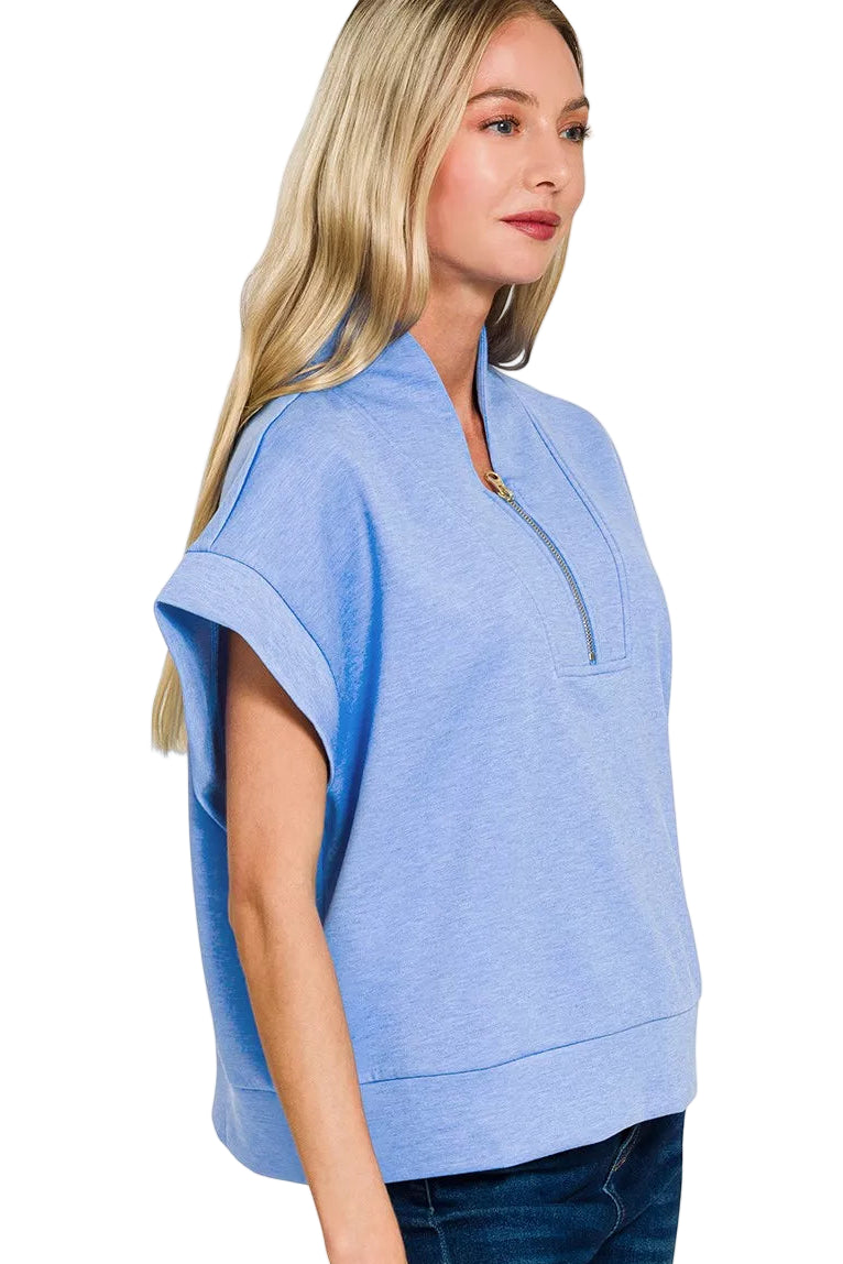 Embrace the allure of effortless elegance with the Zenana Scuba High Neck Half Zip Top. This enchanting piece wraps you in warmth while accentuating your silhouette, making every moment feel like a romantic rendezvous.