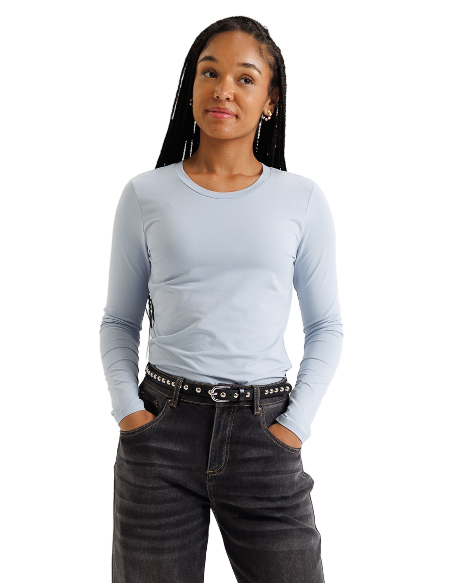 Embrace the essence of simplicity with our Essential Long Sleeve Tee, a garment that whispers romance in every thread. Crafted from a luxurious blend of 55% cotton, 40% modal, and 5% spandex, it caresses your skin like a gentle breeze on a warm summer evening.