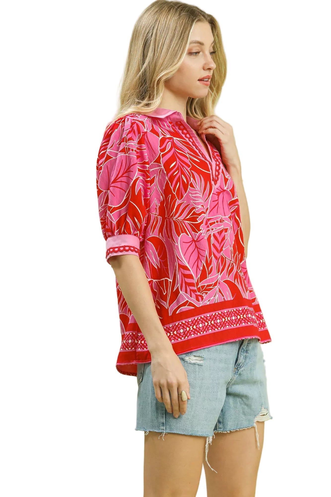 Whisper sweet nothings to your wardrobe with the Umgee Tropical Print Puff Sleeve Blouse. This enchanting piece, adorned with vibrant tropical prints, captures the essence of summer romance, inviting you to bask in its playful allure.