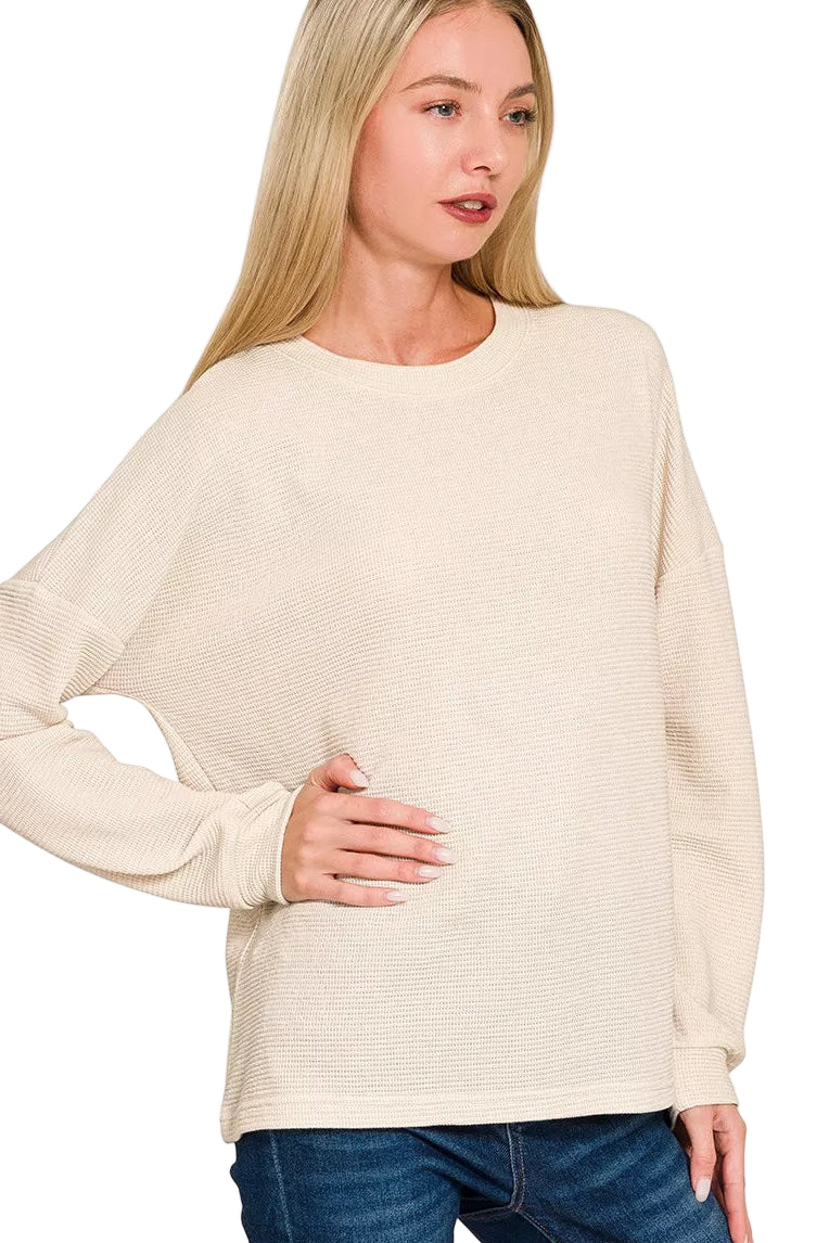 Wrap yourself in the gentle embrace of the Zenana Double Knit Round Neck Long Sleeve Top, a piece that whispers romance with every stitch. Its soft, double knit fabric caresses your skin, offering warmth and a silhouette that flatters your form, making it a cherished companion for any occasion.