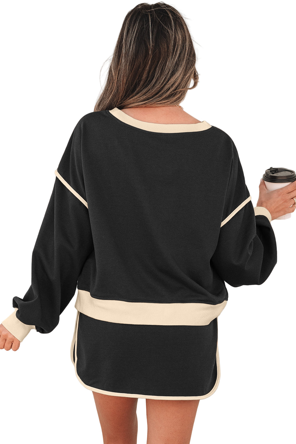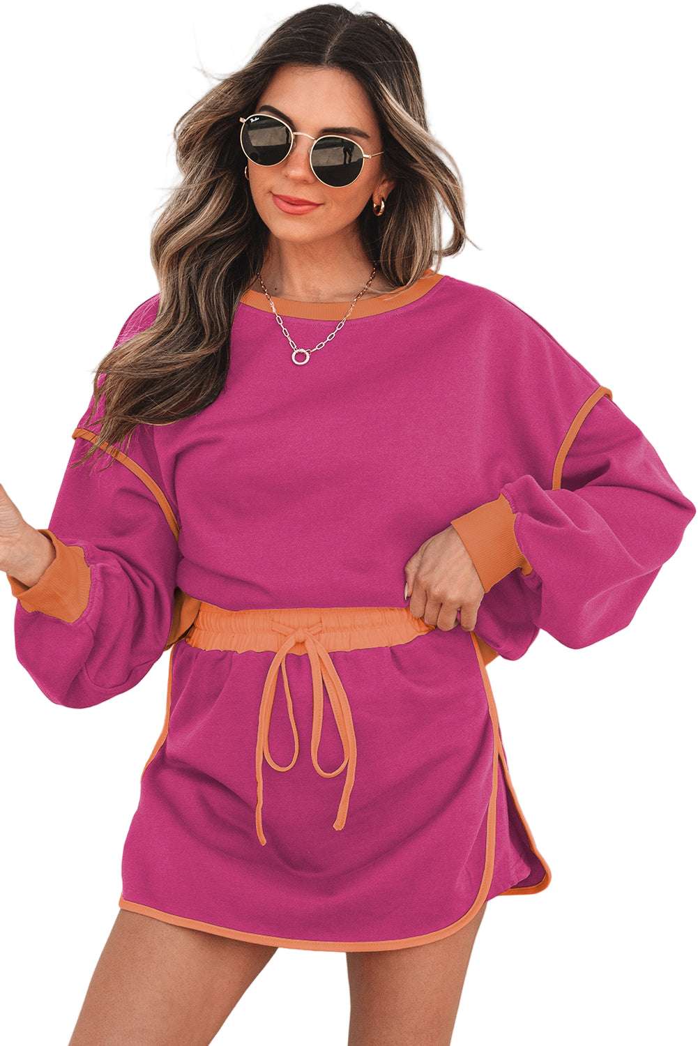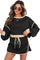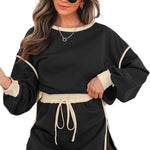 With its delicate lace-up waist, the skort dances playfully, accentuating your silhouette while inviting admiration. The drop shoulder sleeves of the pullover add a touch of casual elegance, perfect for a moonlit stroll or a cozy dinner date. Embrace the magic of this set, where every moment feels like a cherished memory waiting to unfold.