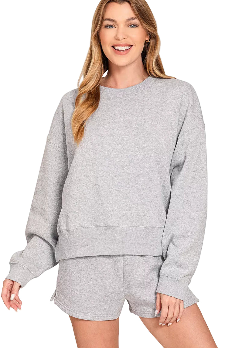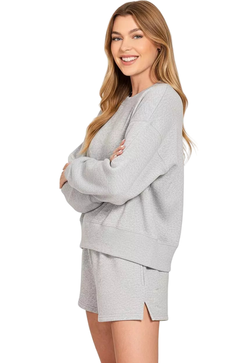 This Fleece Round Neck Sweatshirt and Shorts Set is perfect for a cozy and stylish casual look. It is made from soft and comfortable fleece material. The round neck design adds a classic touch to the outfit. The matching shorts complete the set for a coordinated outfit. Stay warm and fashionable in this trendy set.
