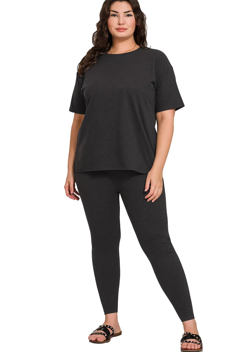 Zenana Full Size Brushed Dty Microfiber Short Sleeve Top and Pants Loungewear Set Plus Size