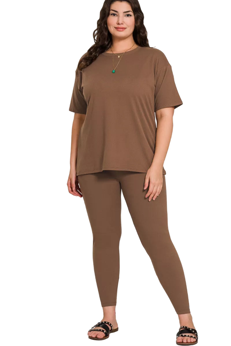 Zenana Full Size Brushed Dty Microfiber Short Sleeve Top and Pants Loungewear Set Plus Size