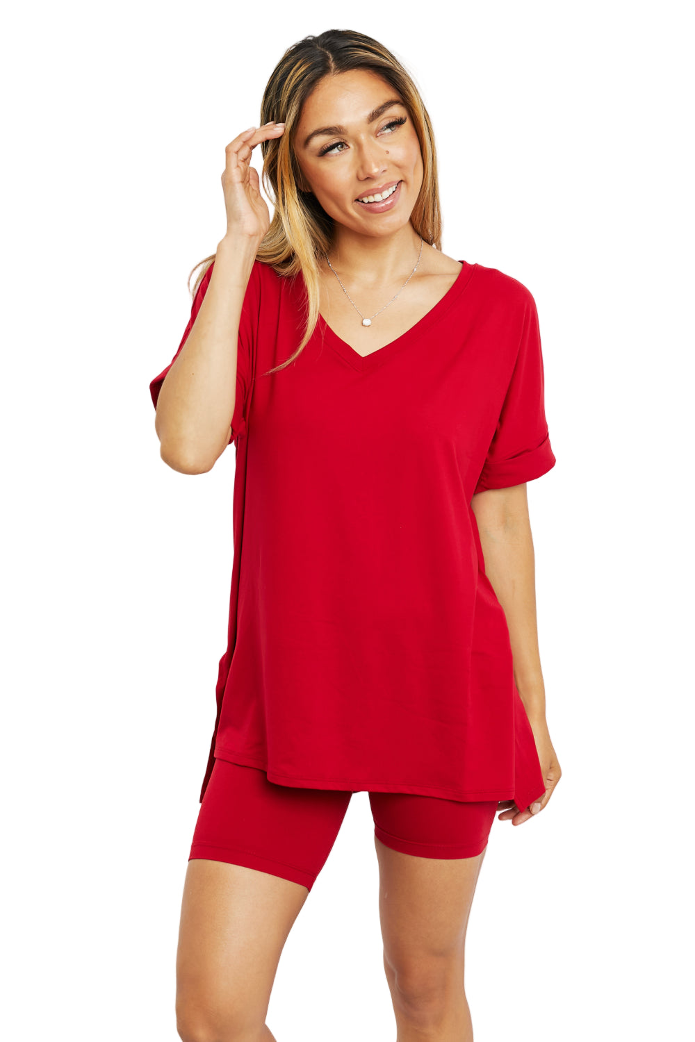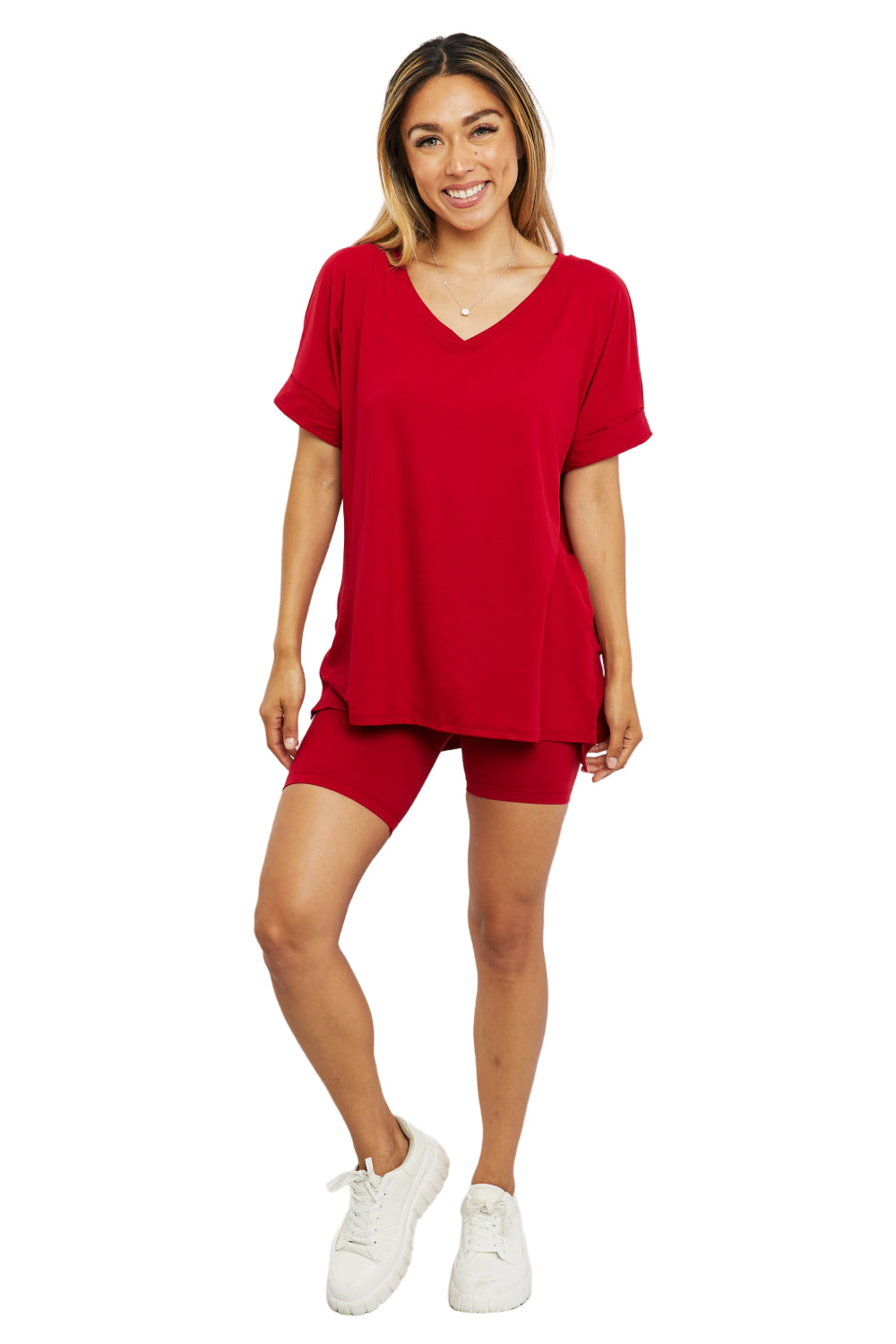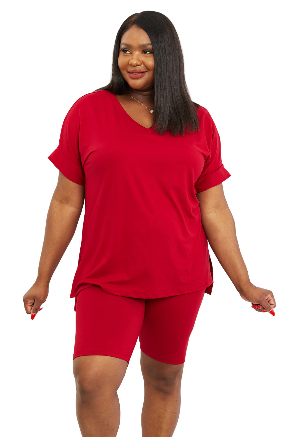 Embrace the allure of tranquility with the Zenana Full Size Quiet Moments Brushed Lounge Set in Burgundy. This exquisite two-piece ensemble wraps you in a soft embrace, inviting you to savor every quiet moment. The brushed DTY microfiber top caresses your skin, while the high-rise biker shorts offer unparalleled comfort.