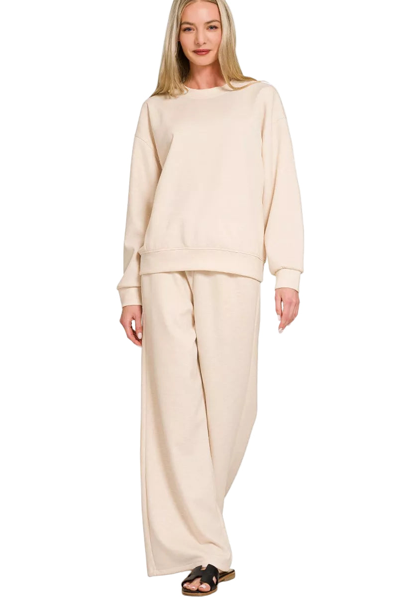 Upgrade your casual wardrobe with this Scuba Crewneck Pullover and Pants Set, crafted for both style and comfort. The crewneck pullover offers a cozy fit for everyday wear, while the matching pants complete the look with a coordinated ensemble. The set features a modern scuba fabric that adds a unique touch to your outfit. Perfect for lounging or casual outings, this set is a versatile addition to your collection. Elevate your cozy chic style with this trendy and comfortable pullover and pants set.
