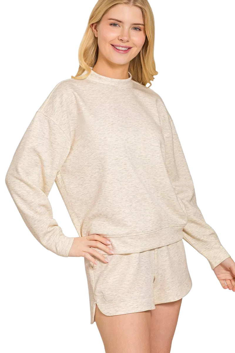 Zenana Scuba Long Sleeve Sweatshirt and Shorts Set