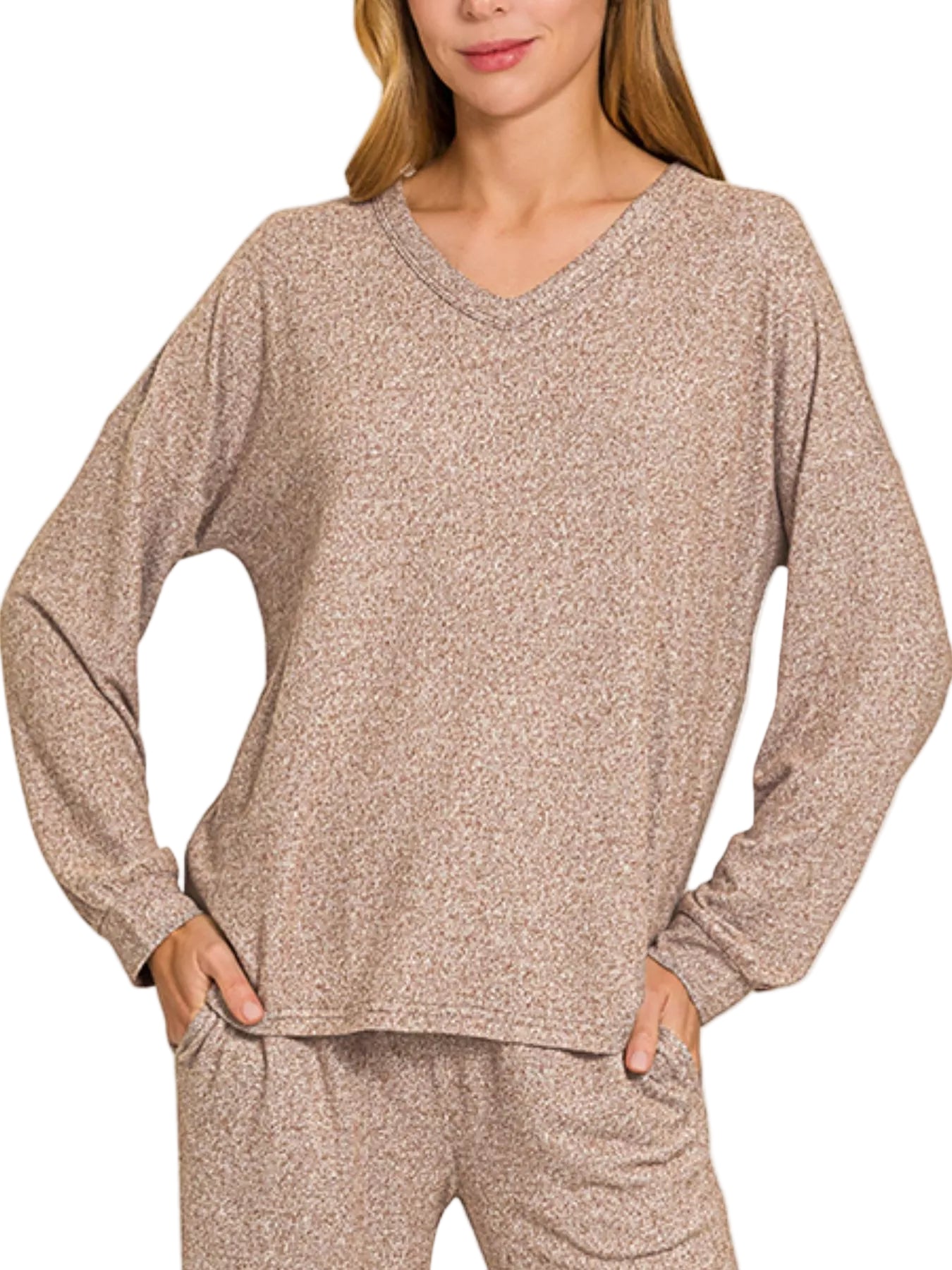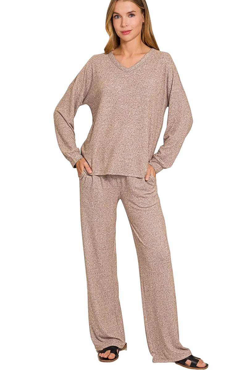 Wrap yourself in the gentle embrace of our Soft Melange Long Sleeve Tee & Pants Set, where comfort meets elegance. The oversized V-neck top flows effortlessly, while the wide-leg pants dance around your legs, creating a silhouette that whispers romance.