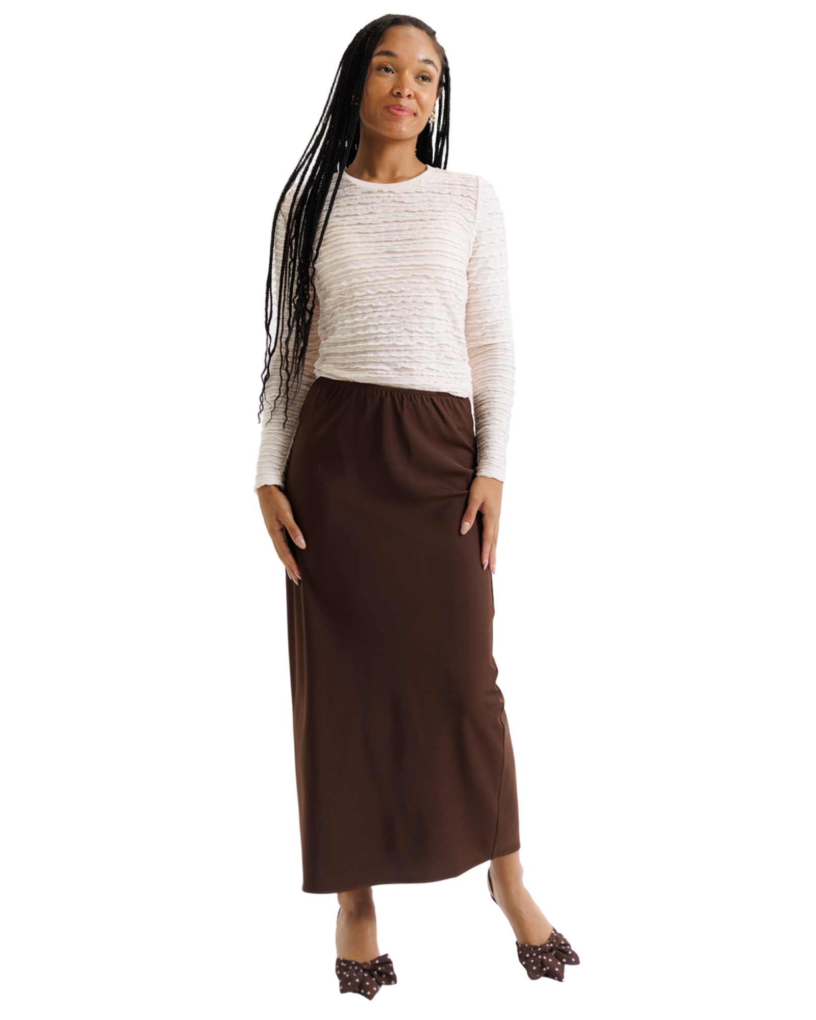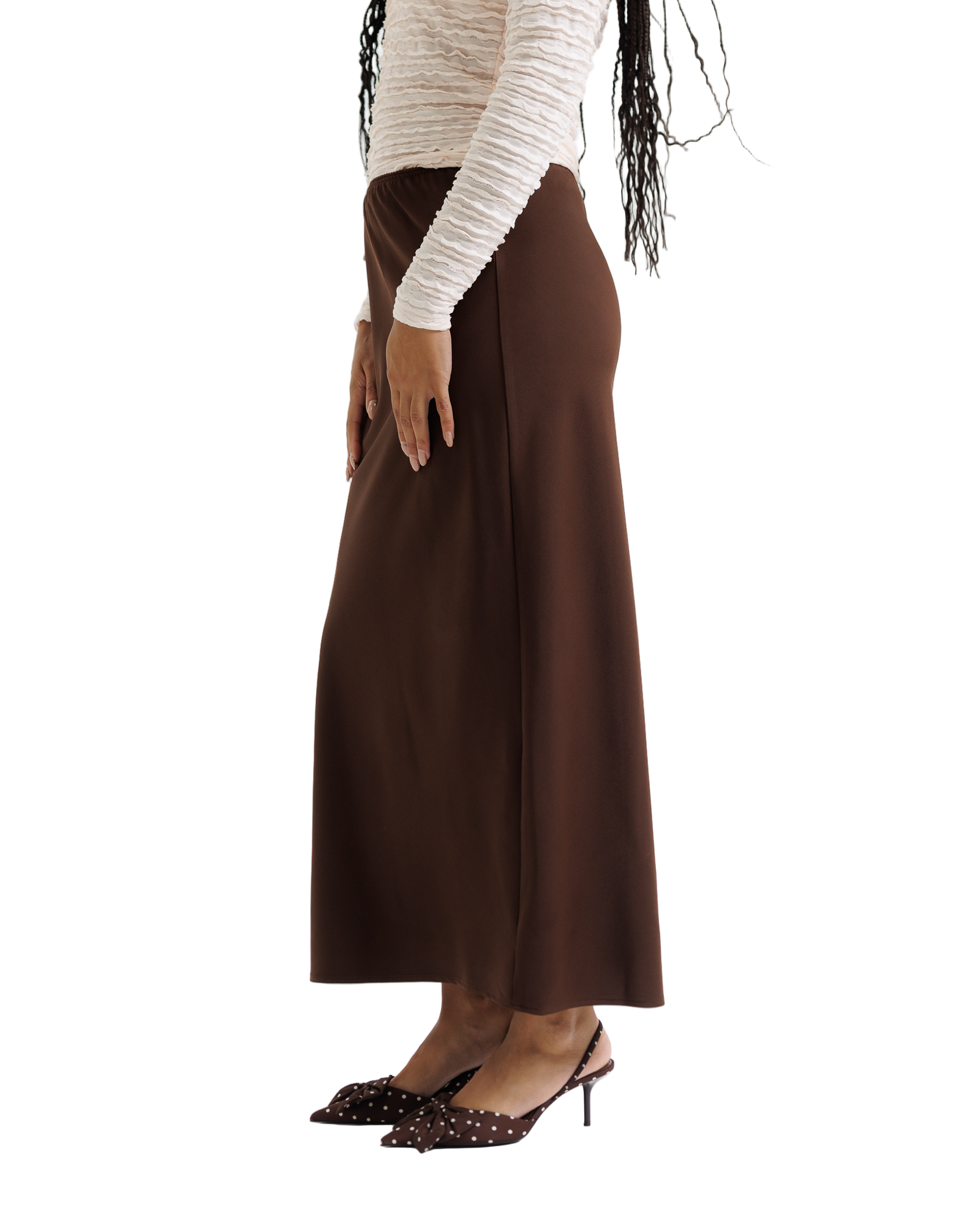 Embrace the allure of romance with the Adina Skirt, a masterpiece that dances gracefully around your silhouette. Its bias cut drapes elegantly, whispering secrets of femininity as it flows to a captivating maxi length.